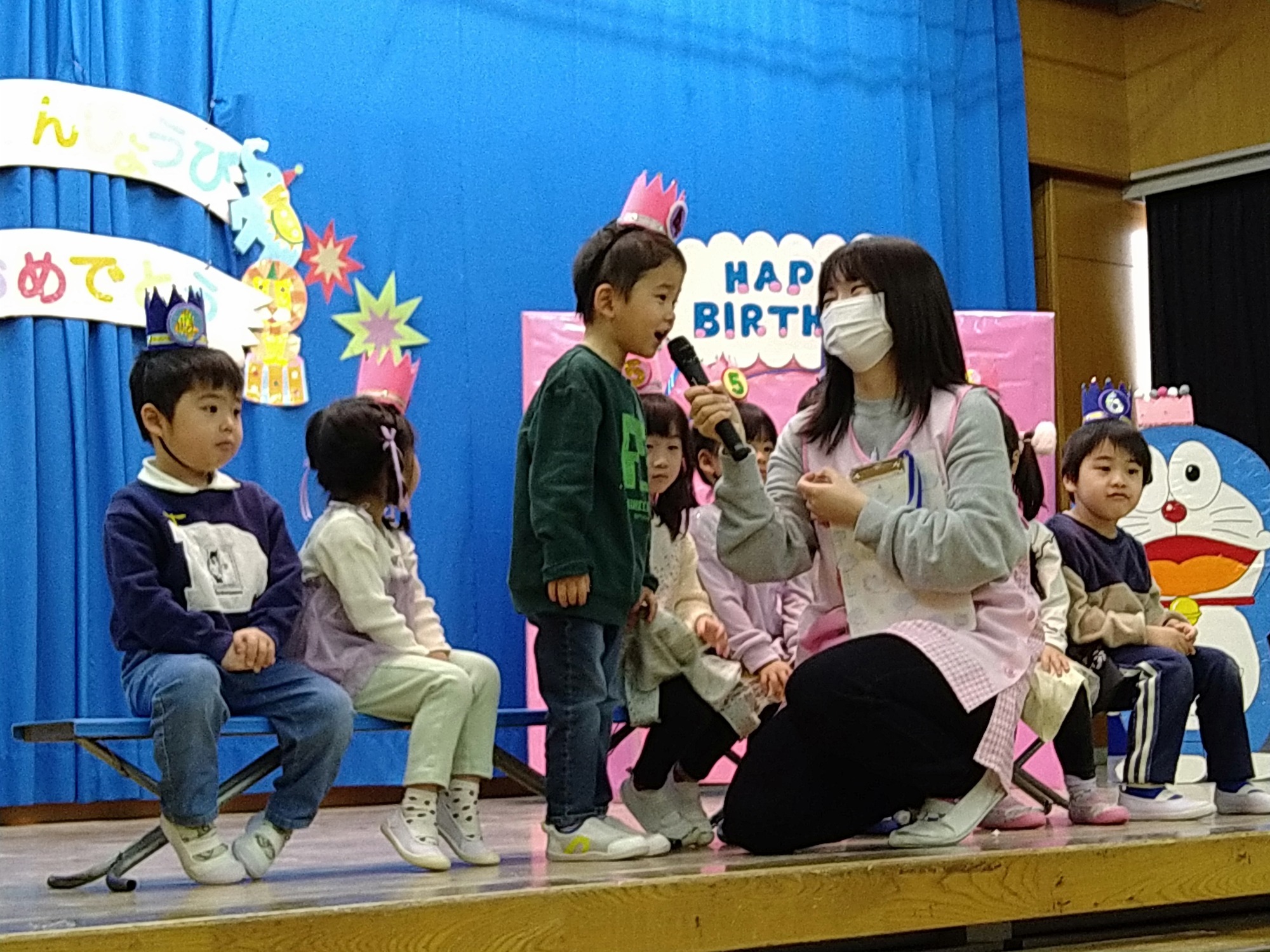 6月生まれのお友だちは、どこでもドアから登場し、「はいポーズ📷」の掛け声で素敵なポーズを披露してくれました😊