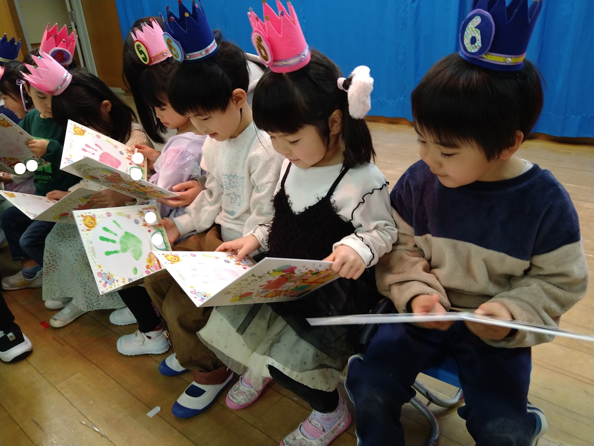 お友だちや、先生たち、おうちの方にたくさんお祝いされて、嬉しい笑顔いっぱいのお誕生会になりました😊🎉