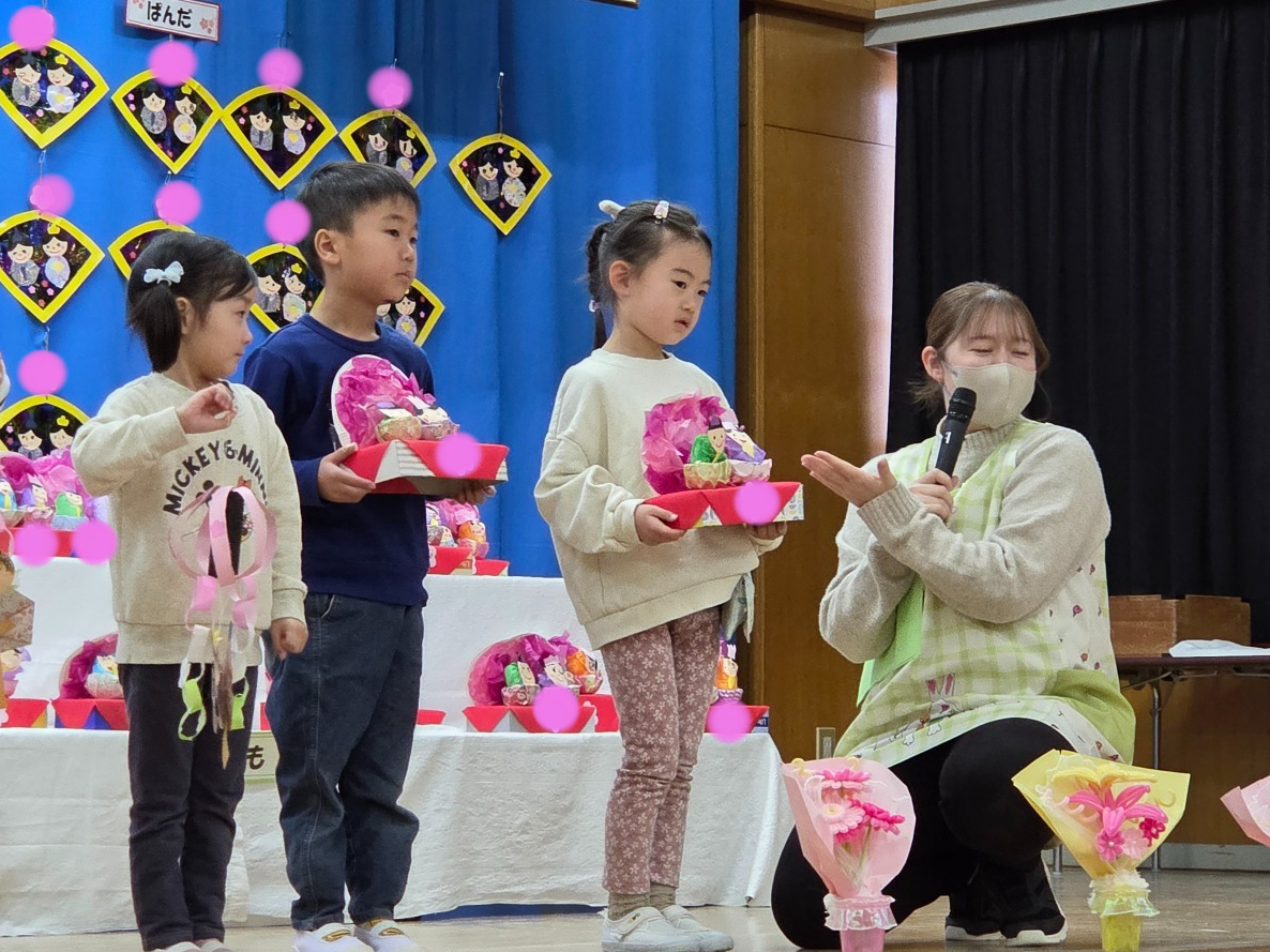 代表のお友だちに、ひなまつり製作の紹介をしてもらったり、ひな飾りの由来を紹介してもらったり、楽しい会となりました😊💮