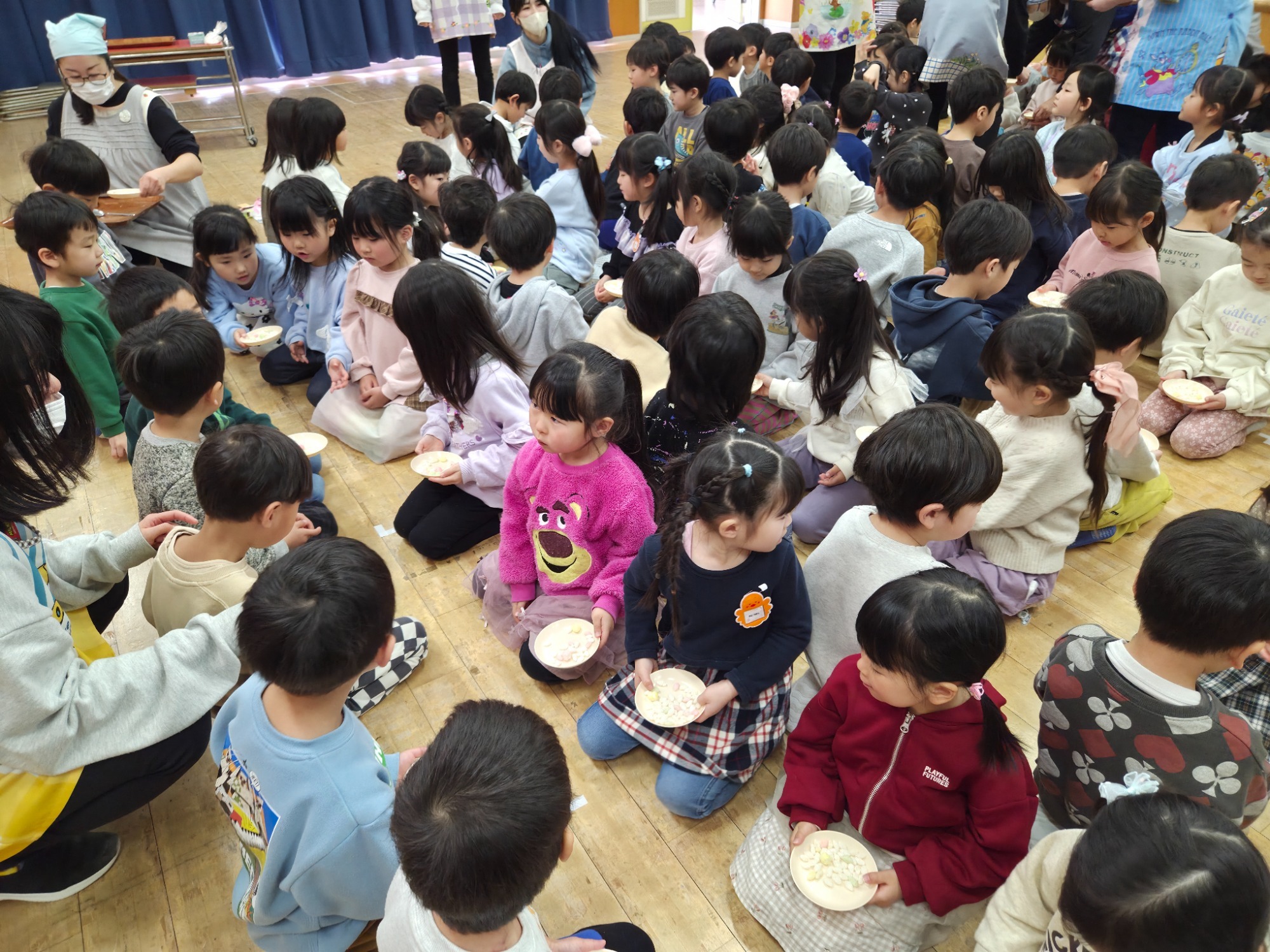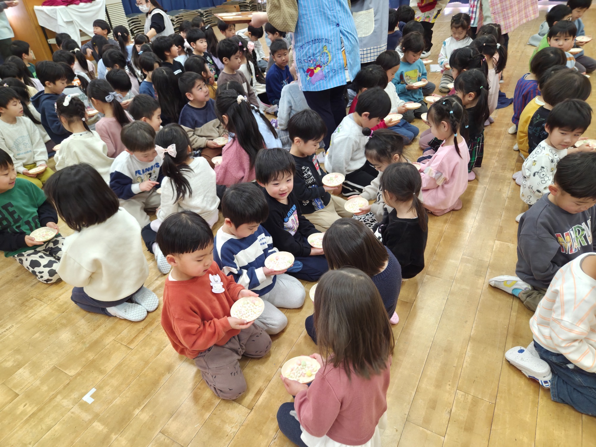 会の最後には、みんなで一緒にひなあられとカルピスを頂き、たくさんの笑顔が見られた子ども達…👦👧