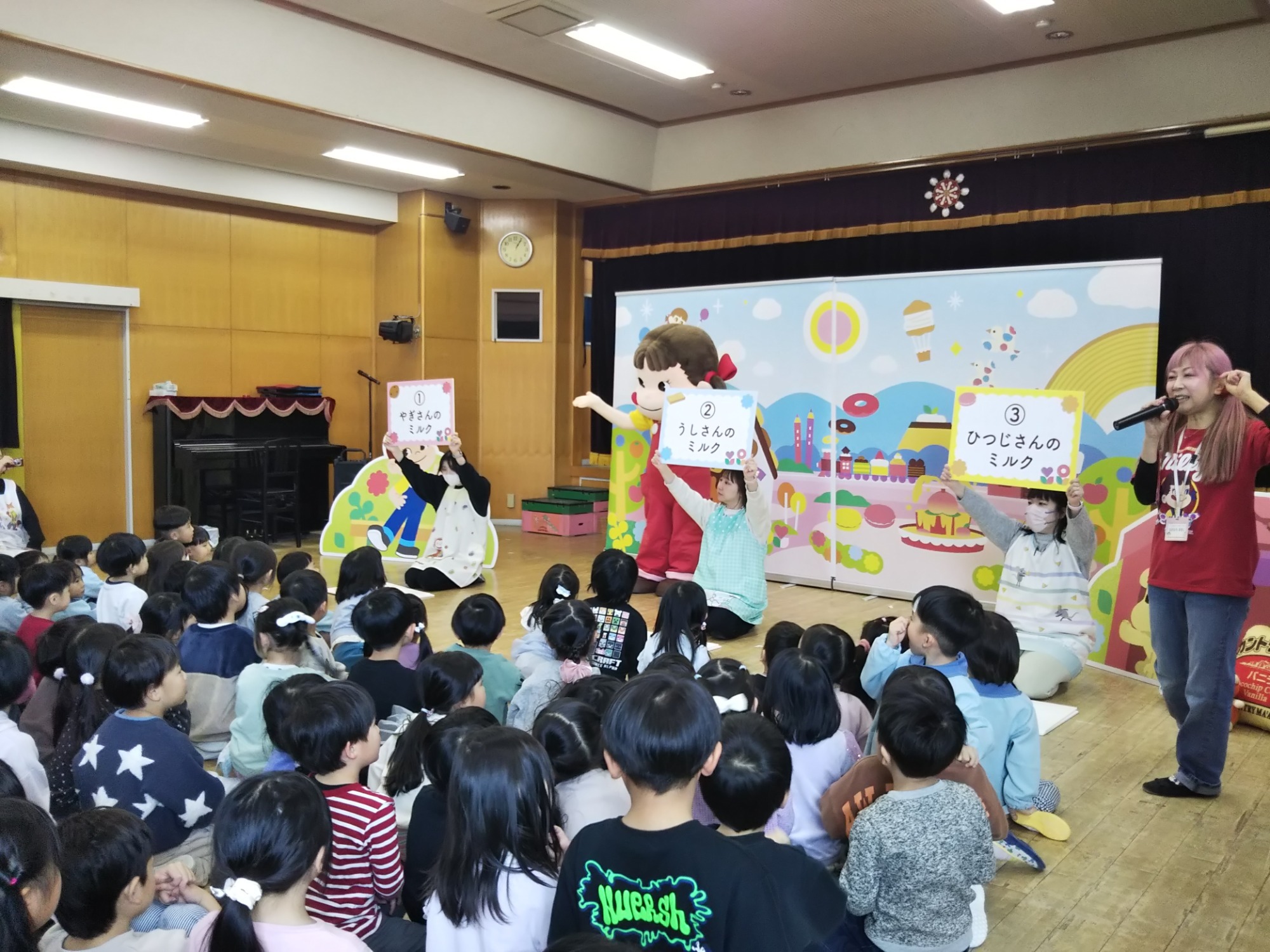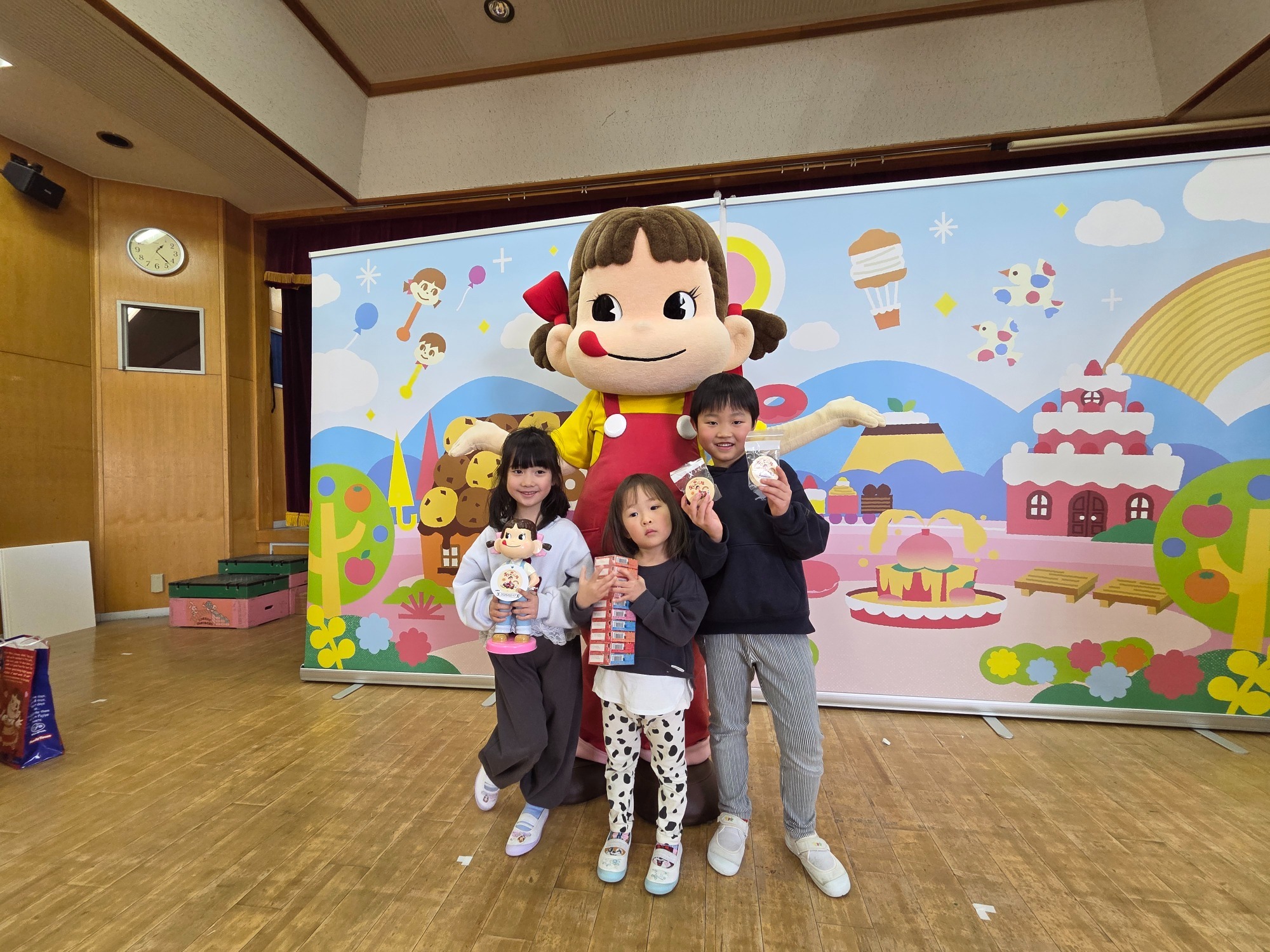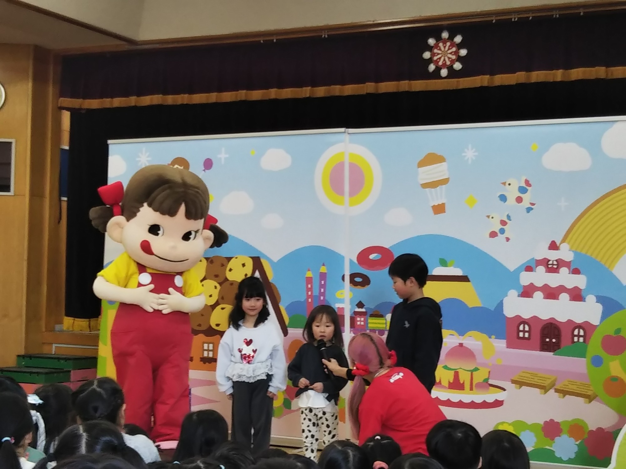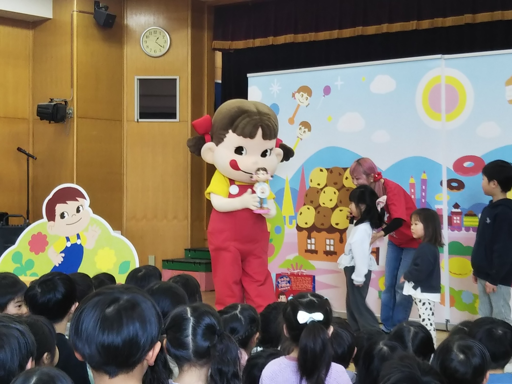 ペコちゃんやお姉さんと一緒にクイズをしたり、『ペコちゃんダンス』を踊ったり、楽しい時間を過ごすことができました💃💞