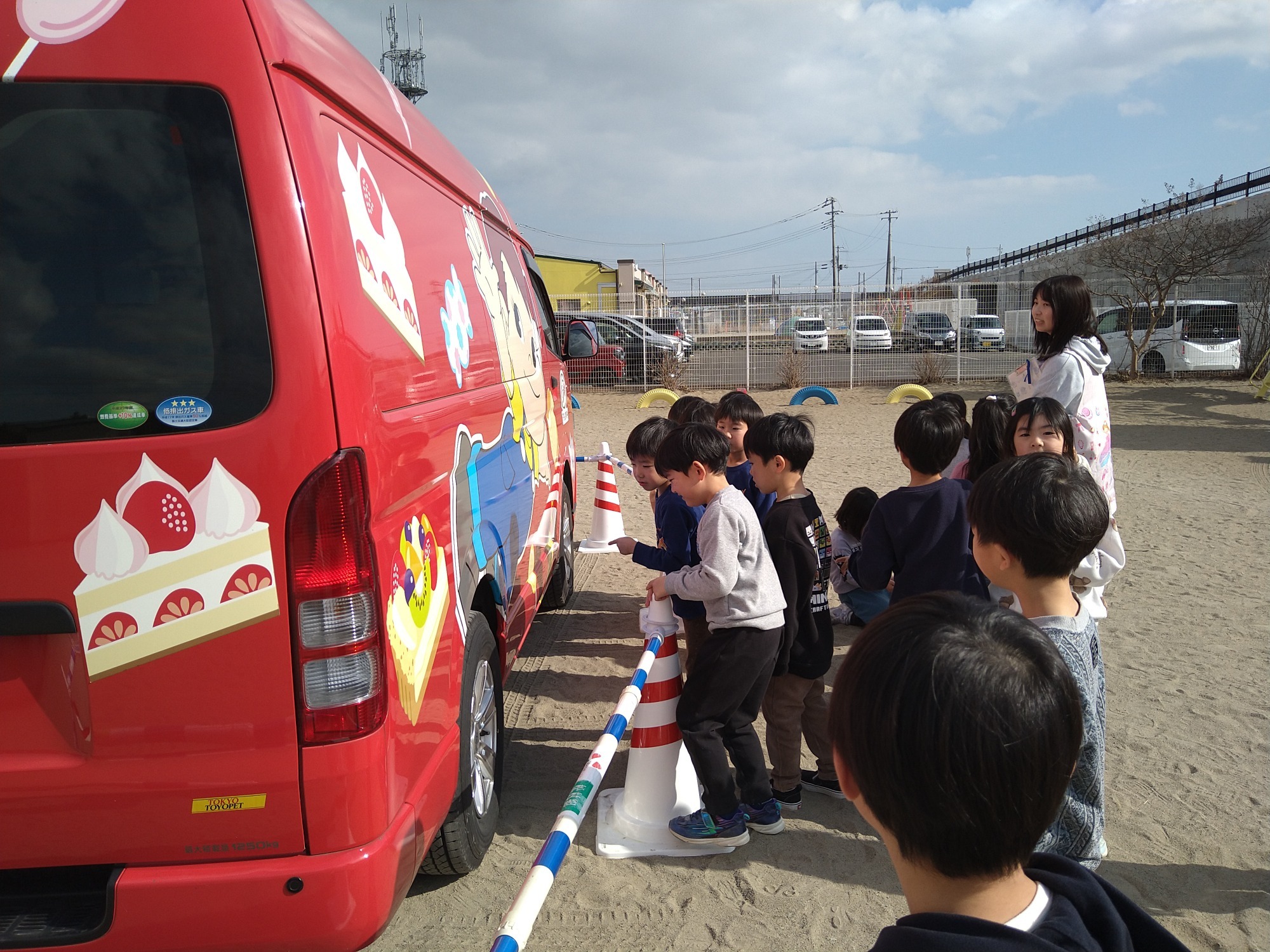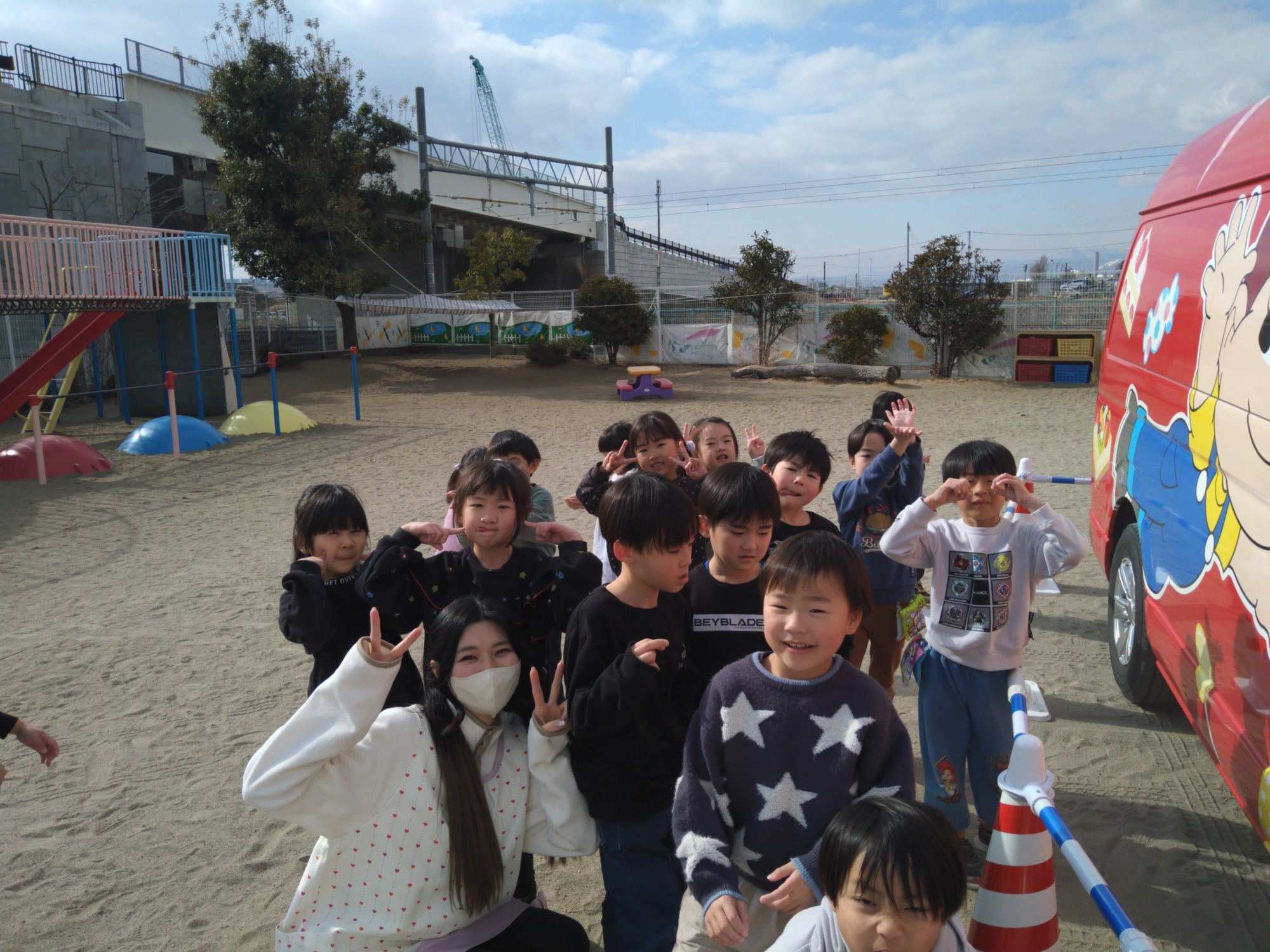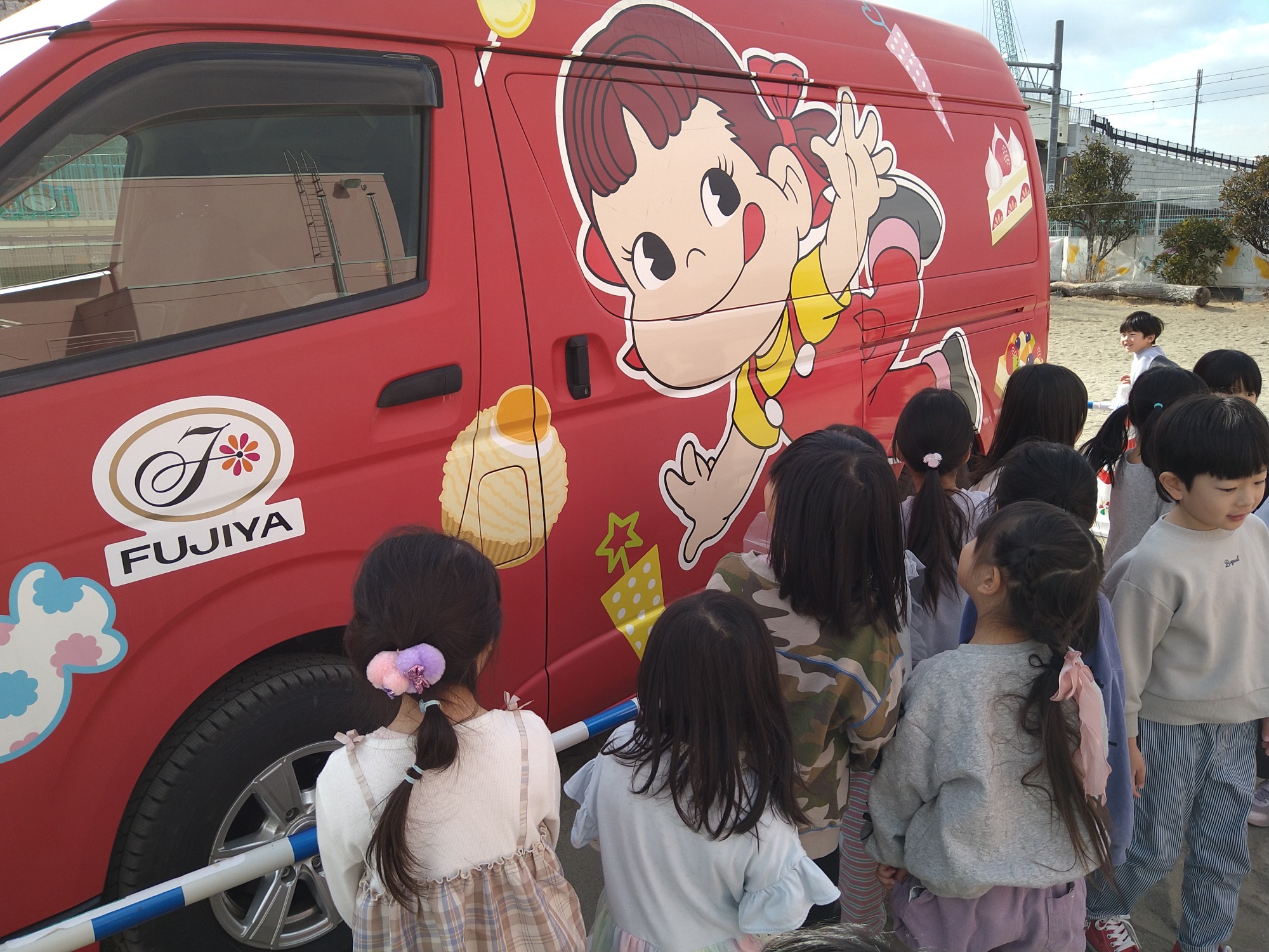 子ども達に、ステッカーとミルキーのお菓子のプレゼントも頂きました🎁🙌かわいいラッピングのキャラバンカーにも釘付けになっていた子ども達でしたよ🤩💡また幼稚園に遊びに来てくれると良いですね🤭👍
