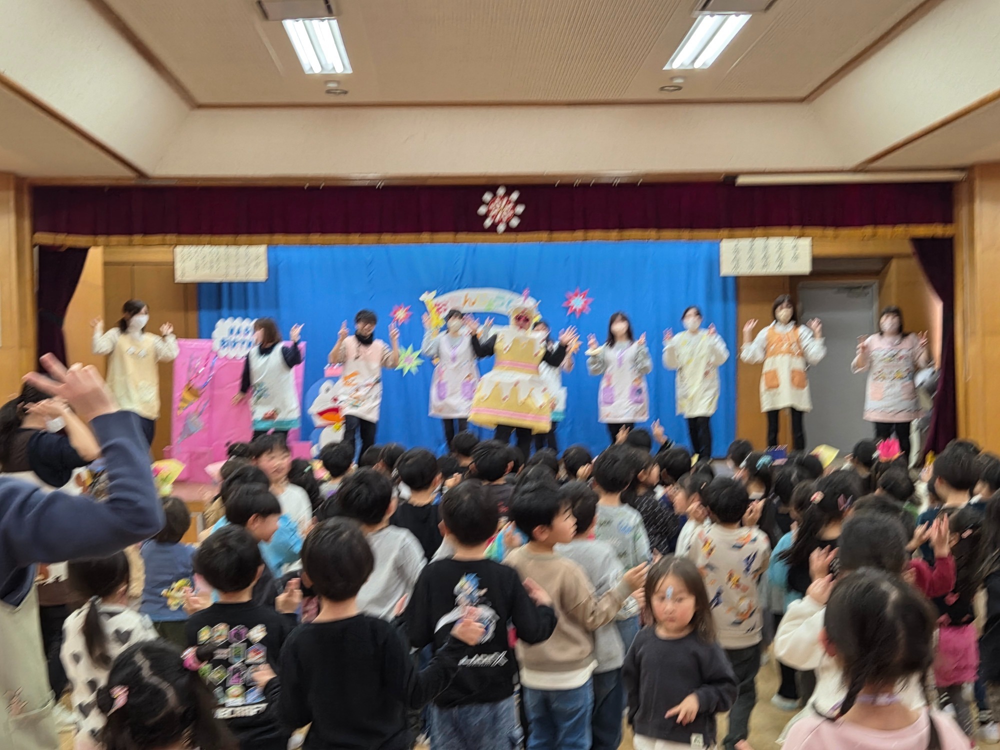 おたのしみでは、とっても元気な“❔なぞのケーキマン🎂”が登場し、エビカニクス体操を披露🦐🦀🎶