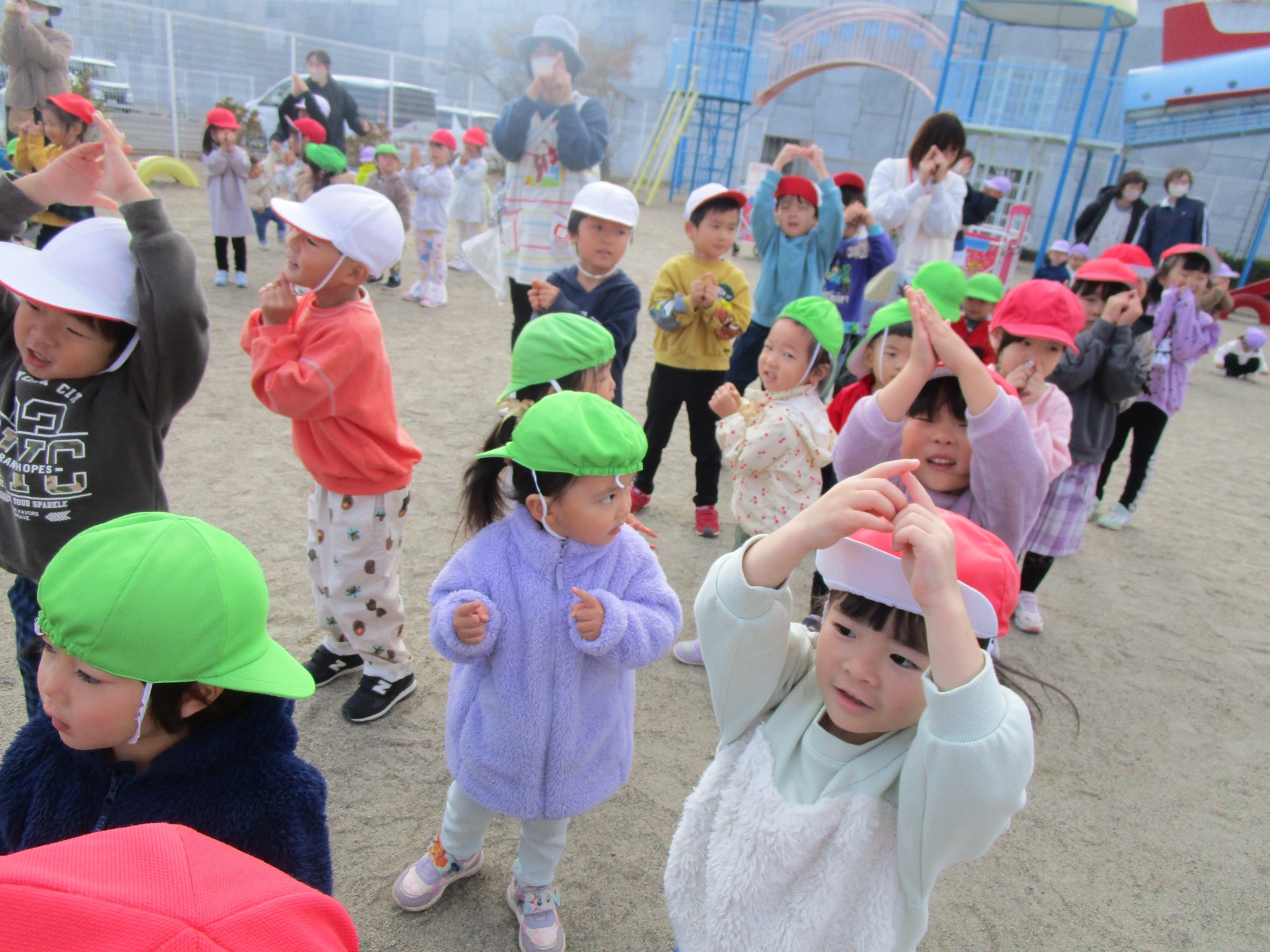 その後は、みんなでいろいろな遊戯を真似をして踊り、笑顔いっぱいになりました😊
