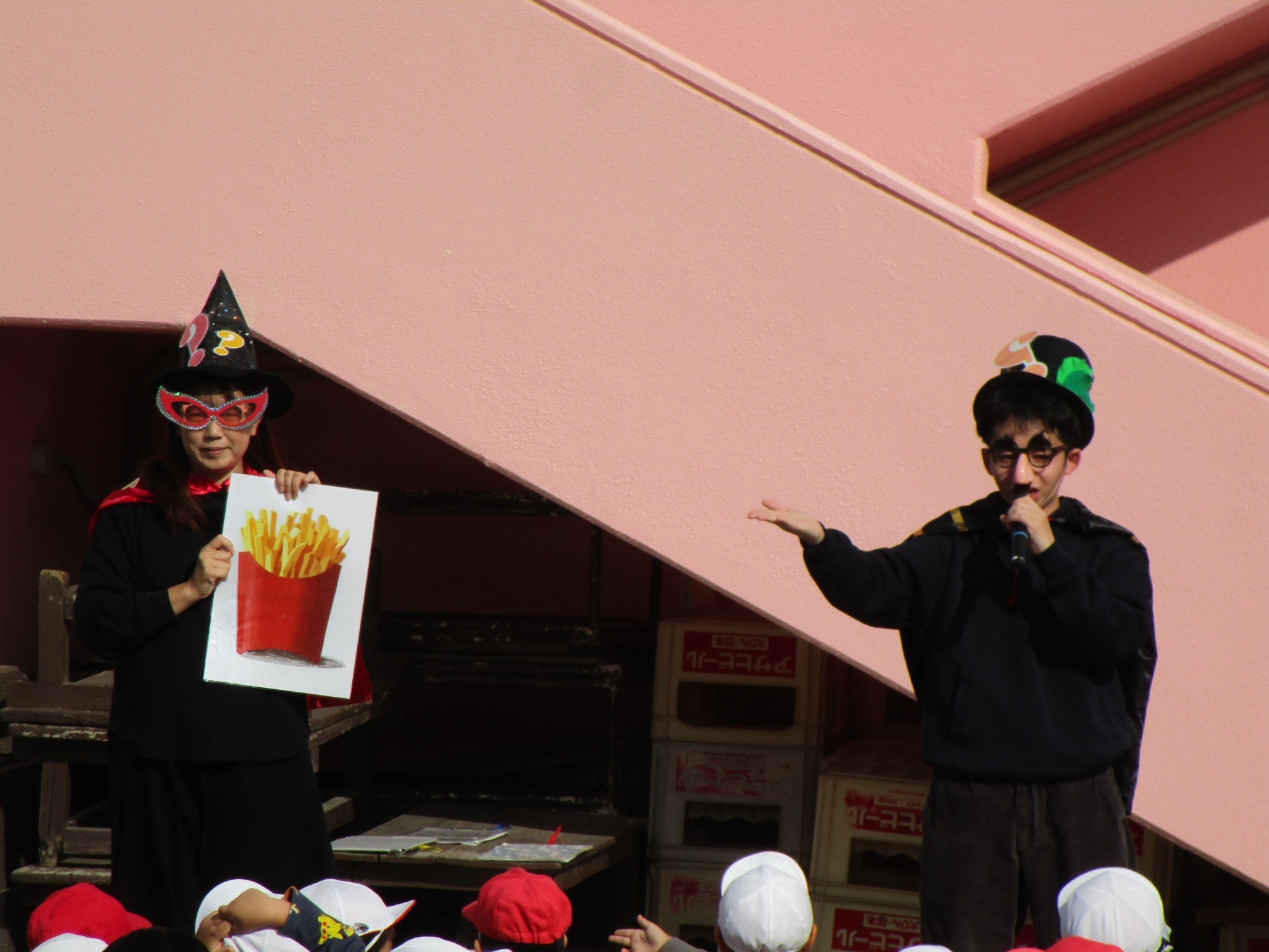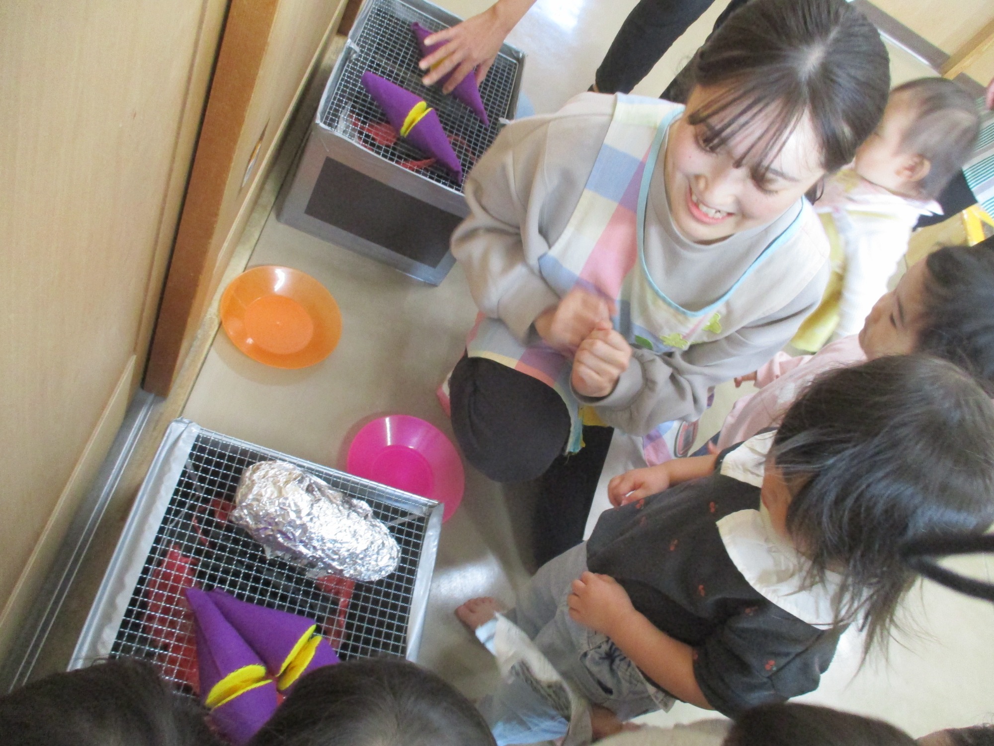 お楽しみでは「ジャガイモ姫」と「さつまいも姫」が登場して戦ったり、クイズの女王が現れてみんなでクイズをしたりと大盛り上がりでした♪