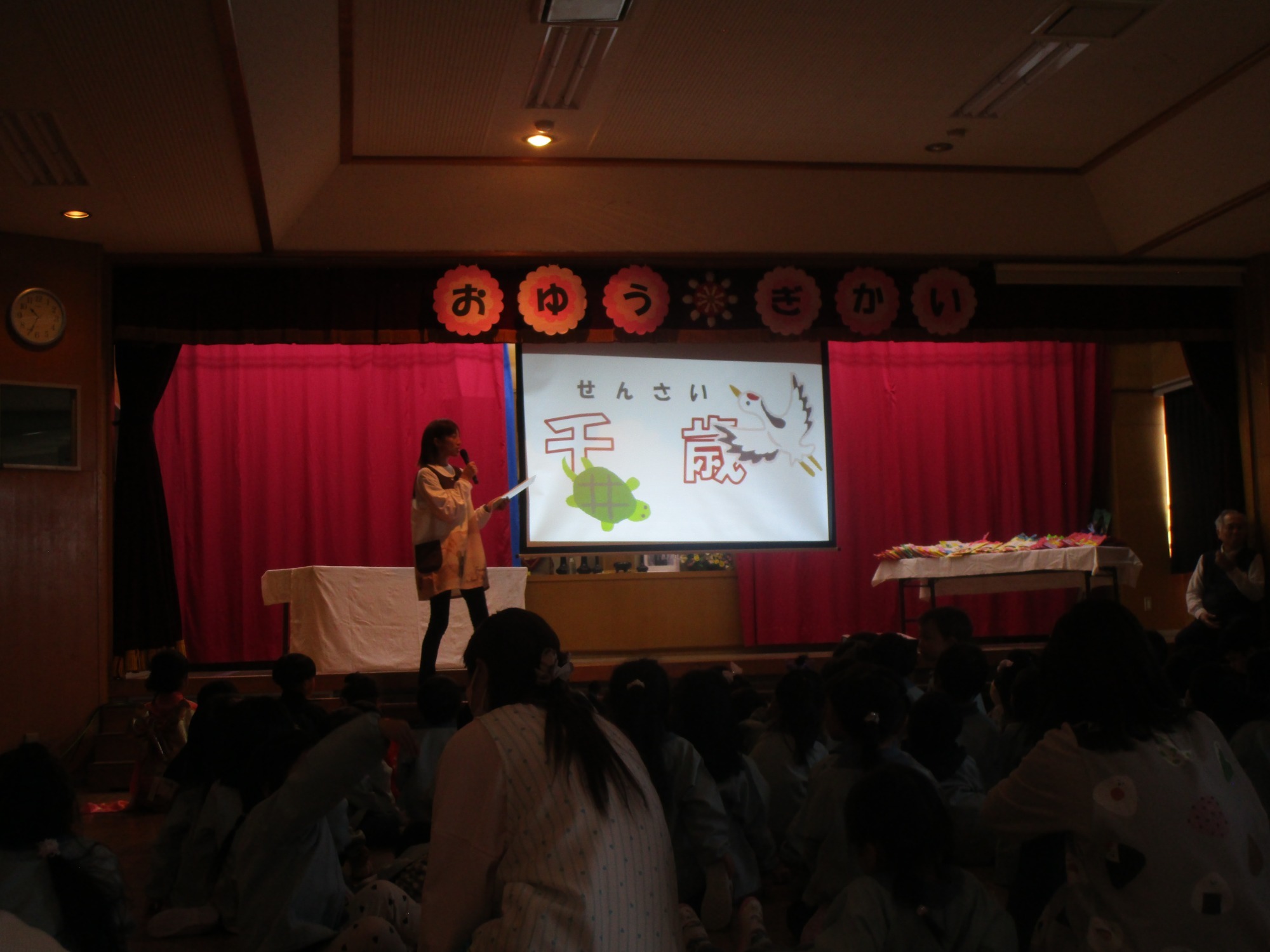 幼稚園の七五三お祝い会に参加し、七五三のお話を聞きました。