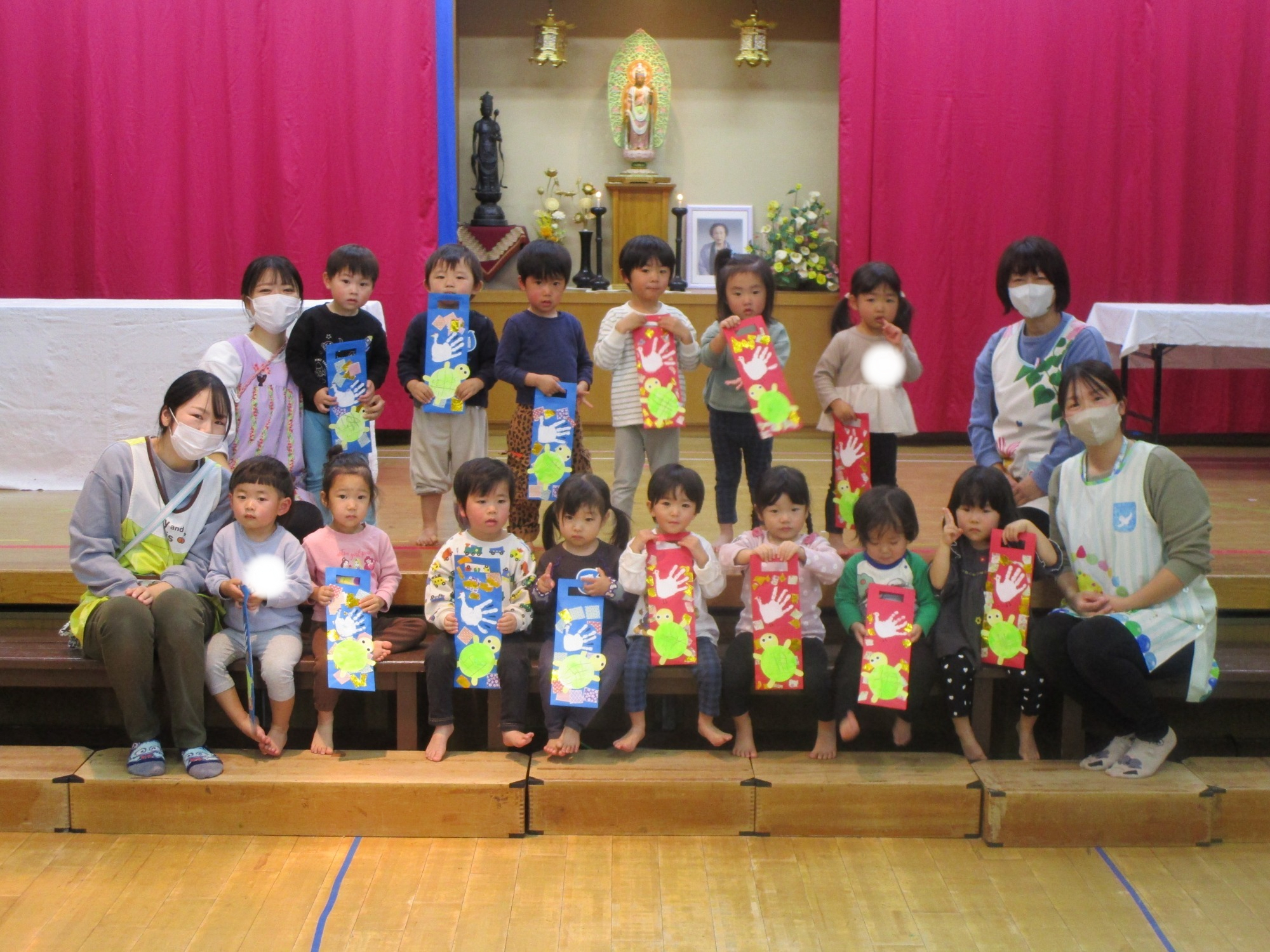 2歳児のお友だちが制作した可愛いお花もののさまにお供えしました(*^-^*)🎵