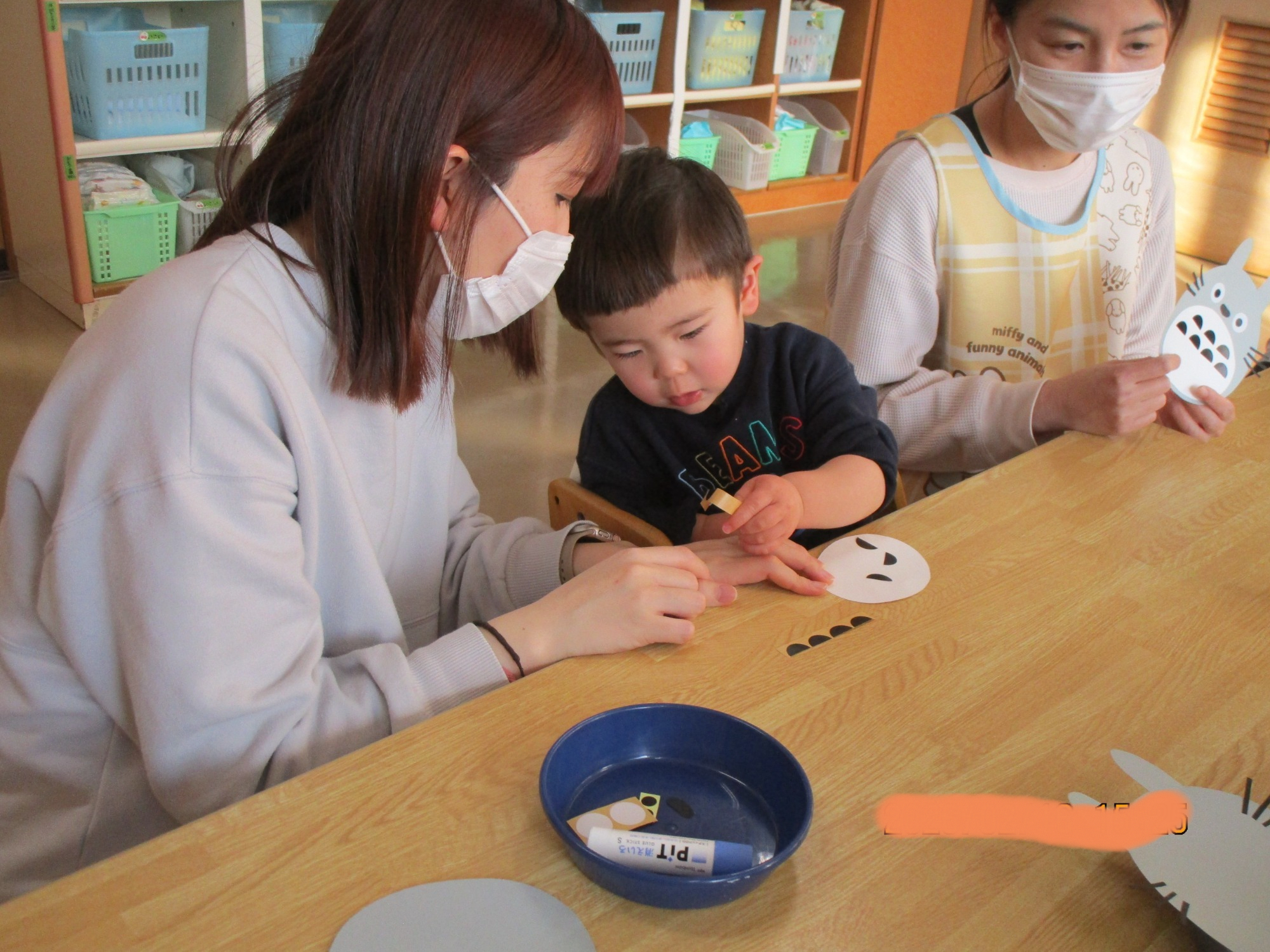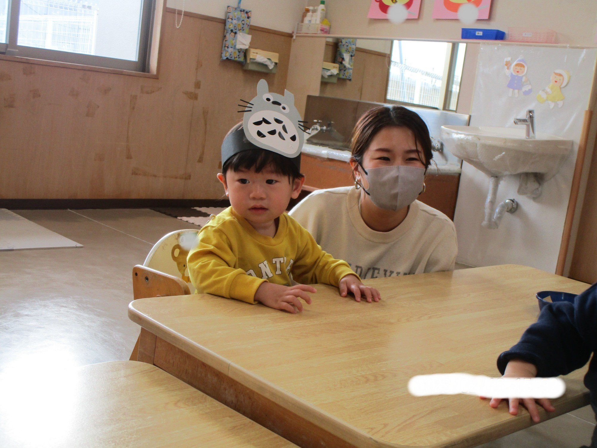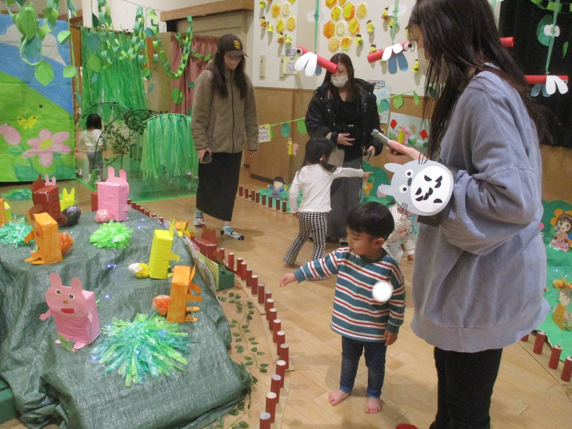 中央には手作りの可愛いおめんもあり、嬉しそうに頭につけていましたよ😊
