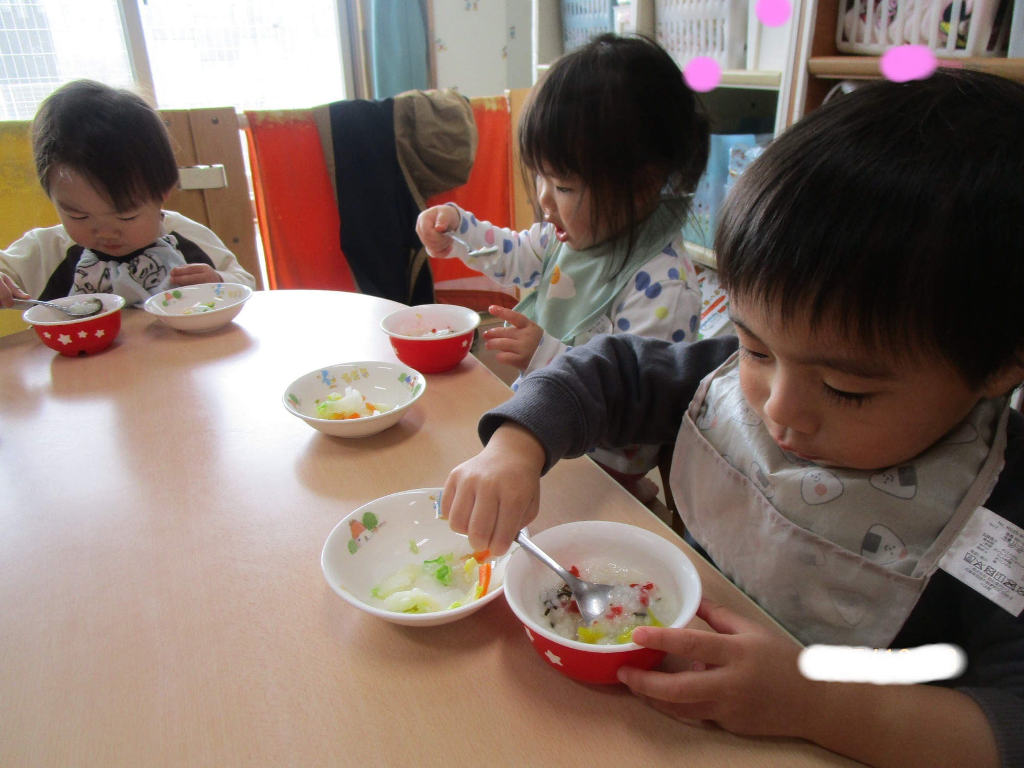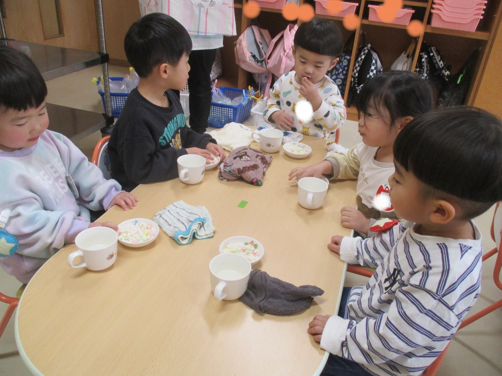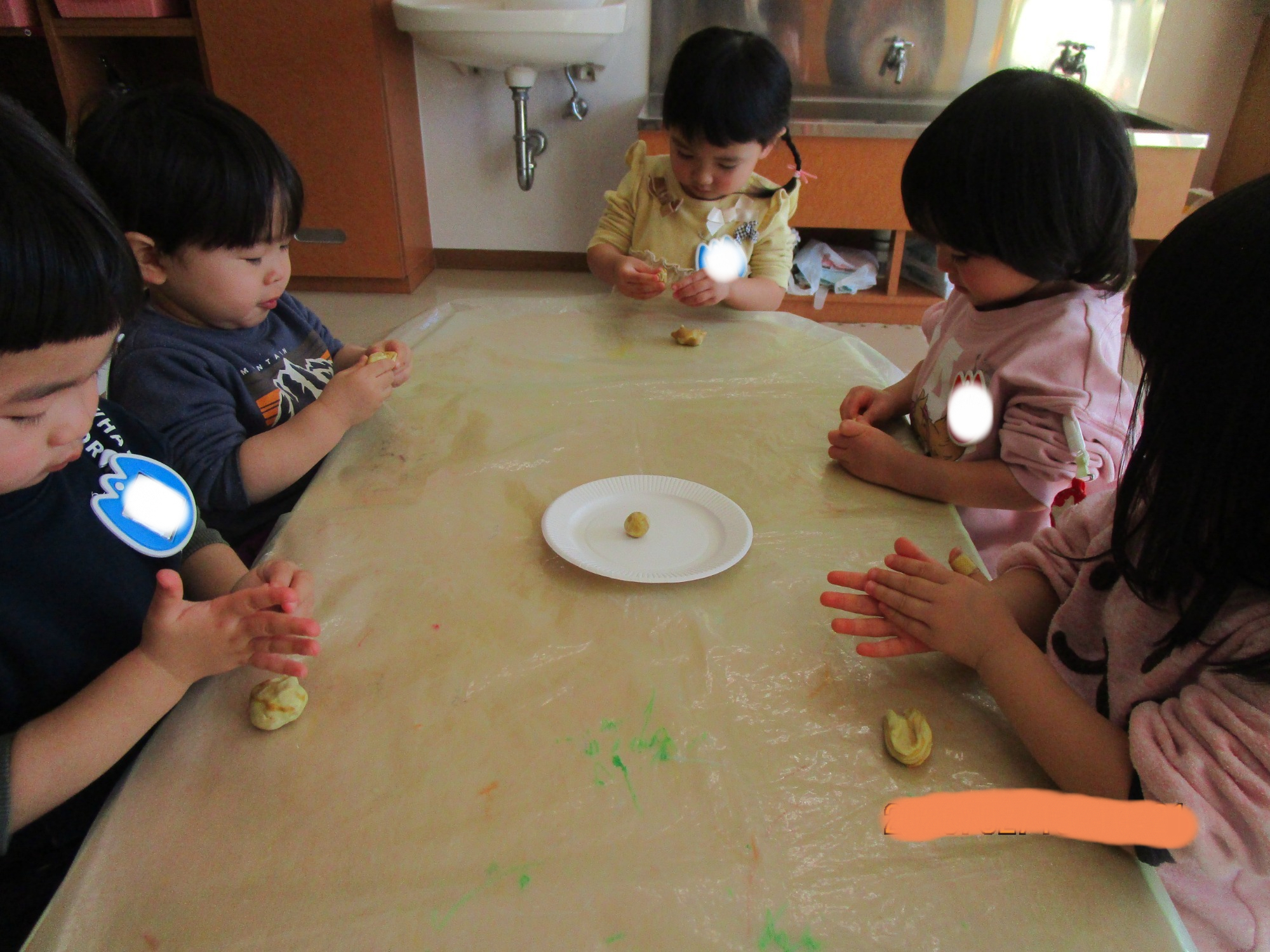 中央には手作りの可愛いおめんもあり、嬉しそうに頭につけていましたよ😊