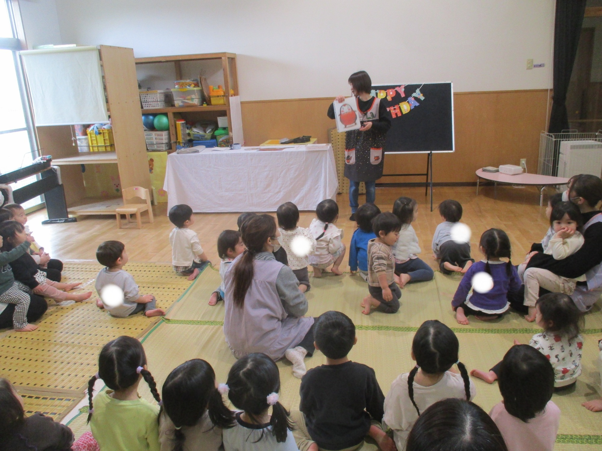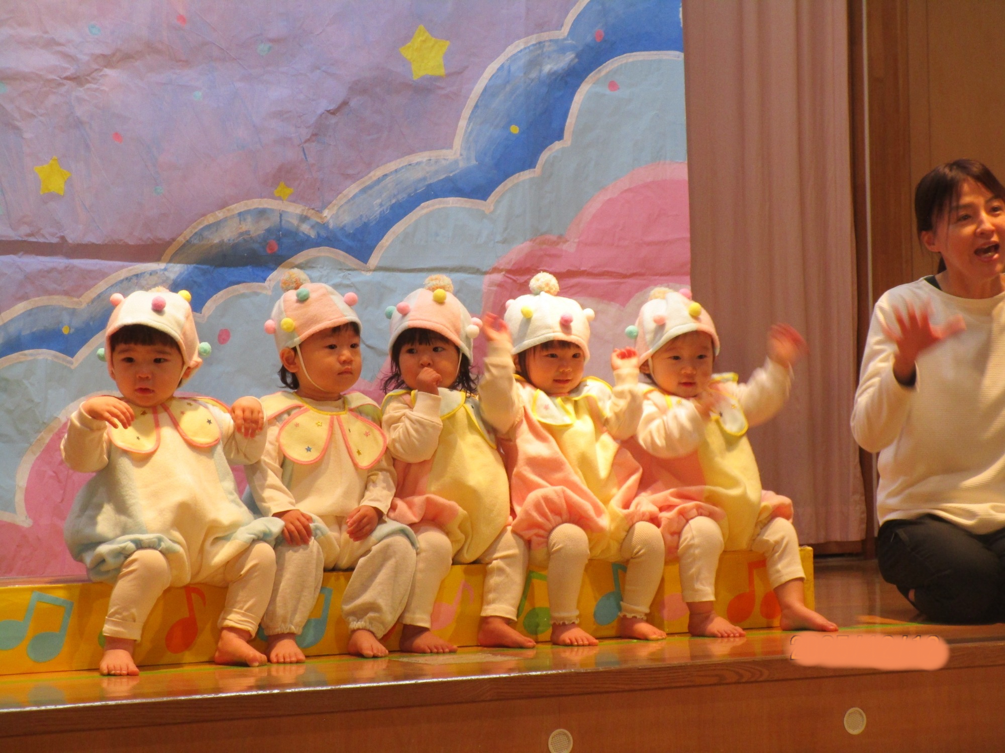 誕生児のお友だちへのインタビューでは、名前や好きな食べ物を答えてくれて皆から拍手をもらっていました😊💖