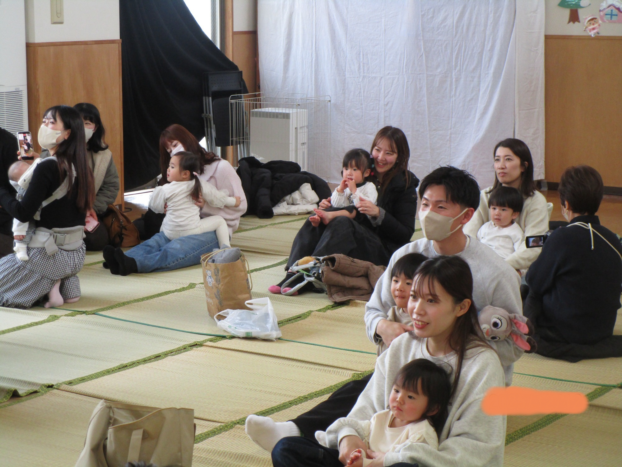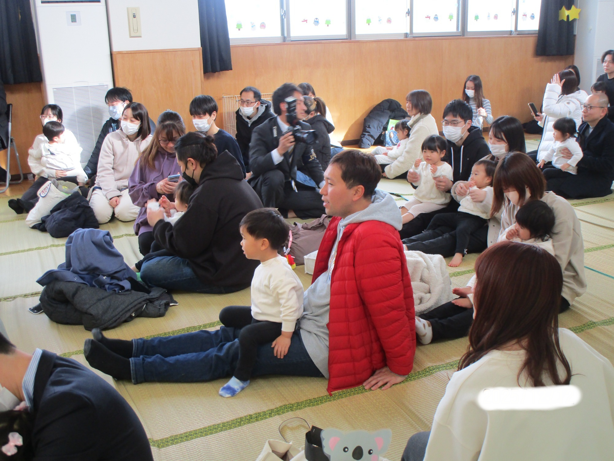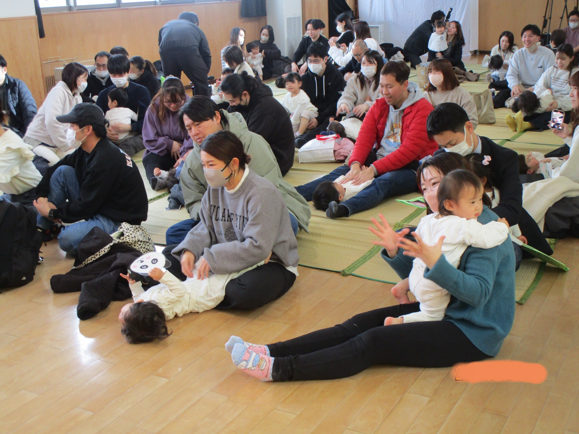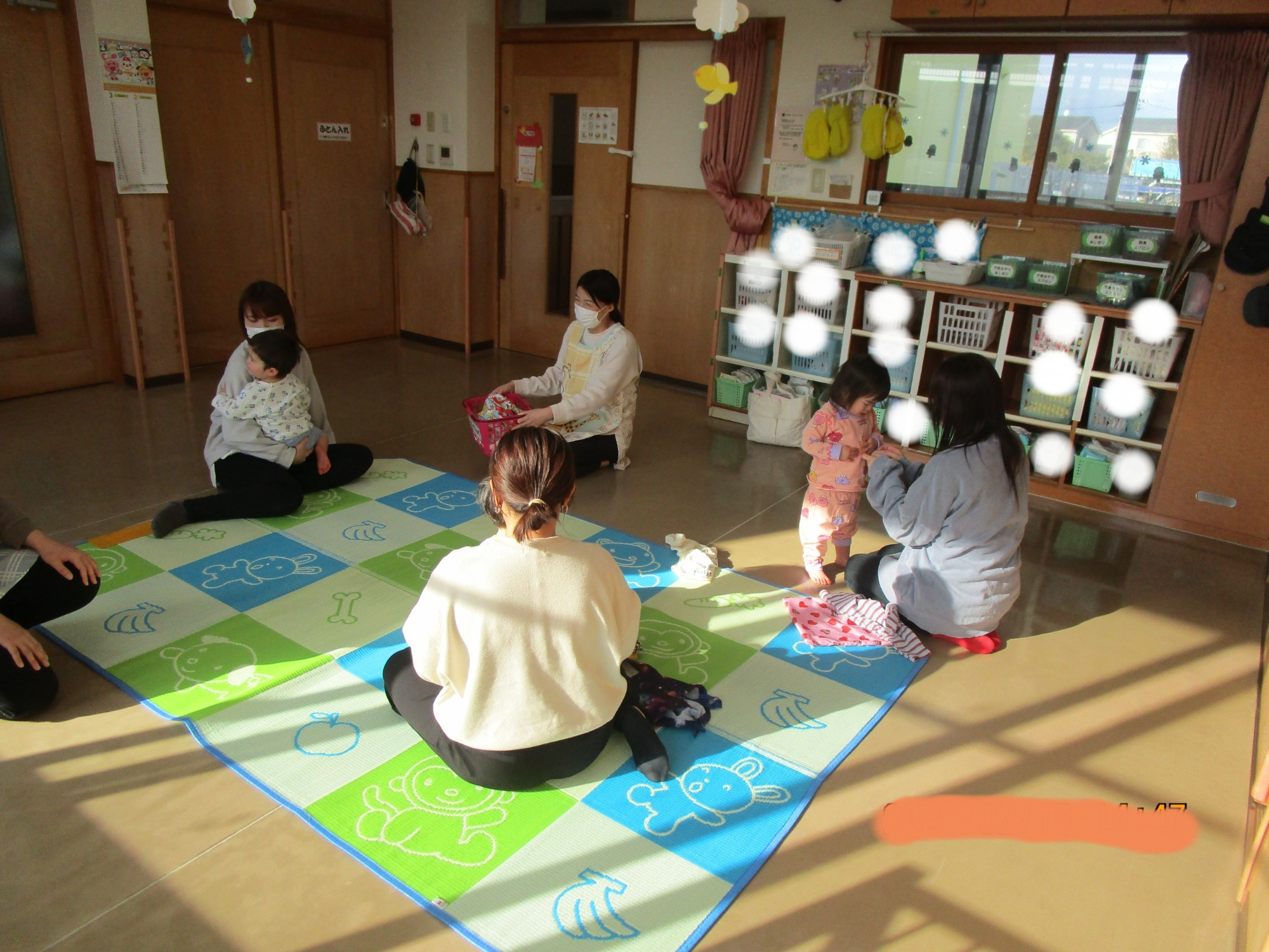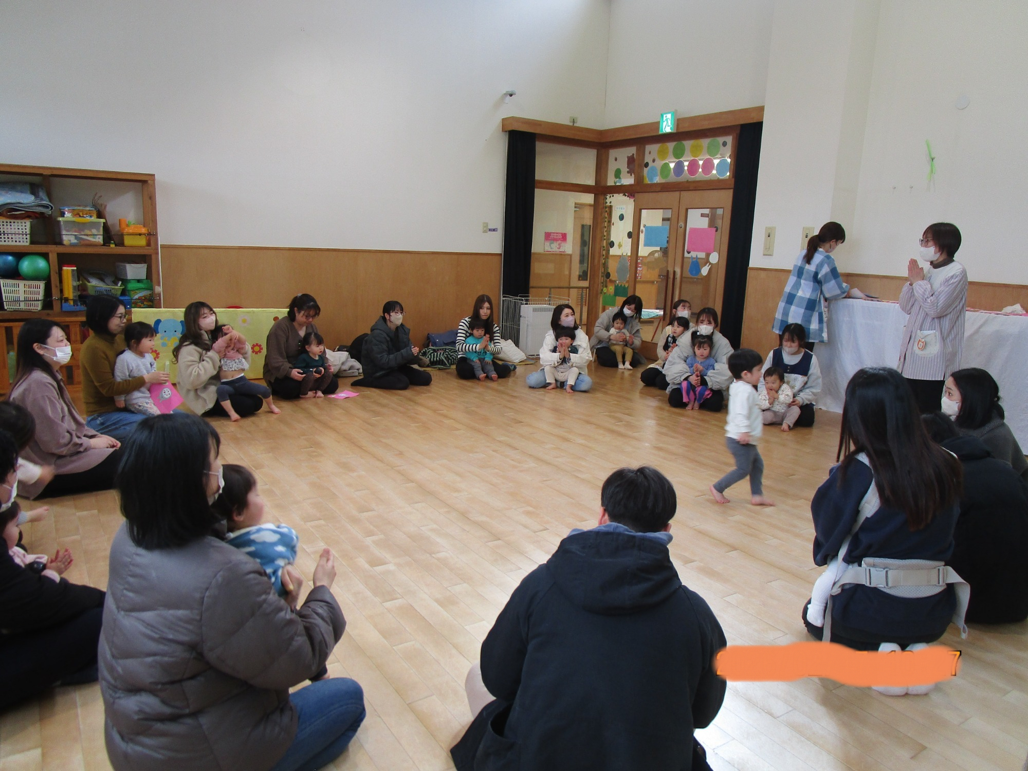 始めはドキドキしている子もいましたが、体操やふれあい遊びが始まると笑顔で参加したり、