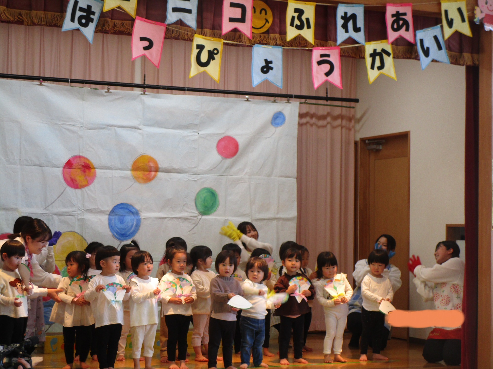 お楽しみで風船が出てきて子どもたちは大喜び😊