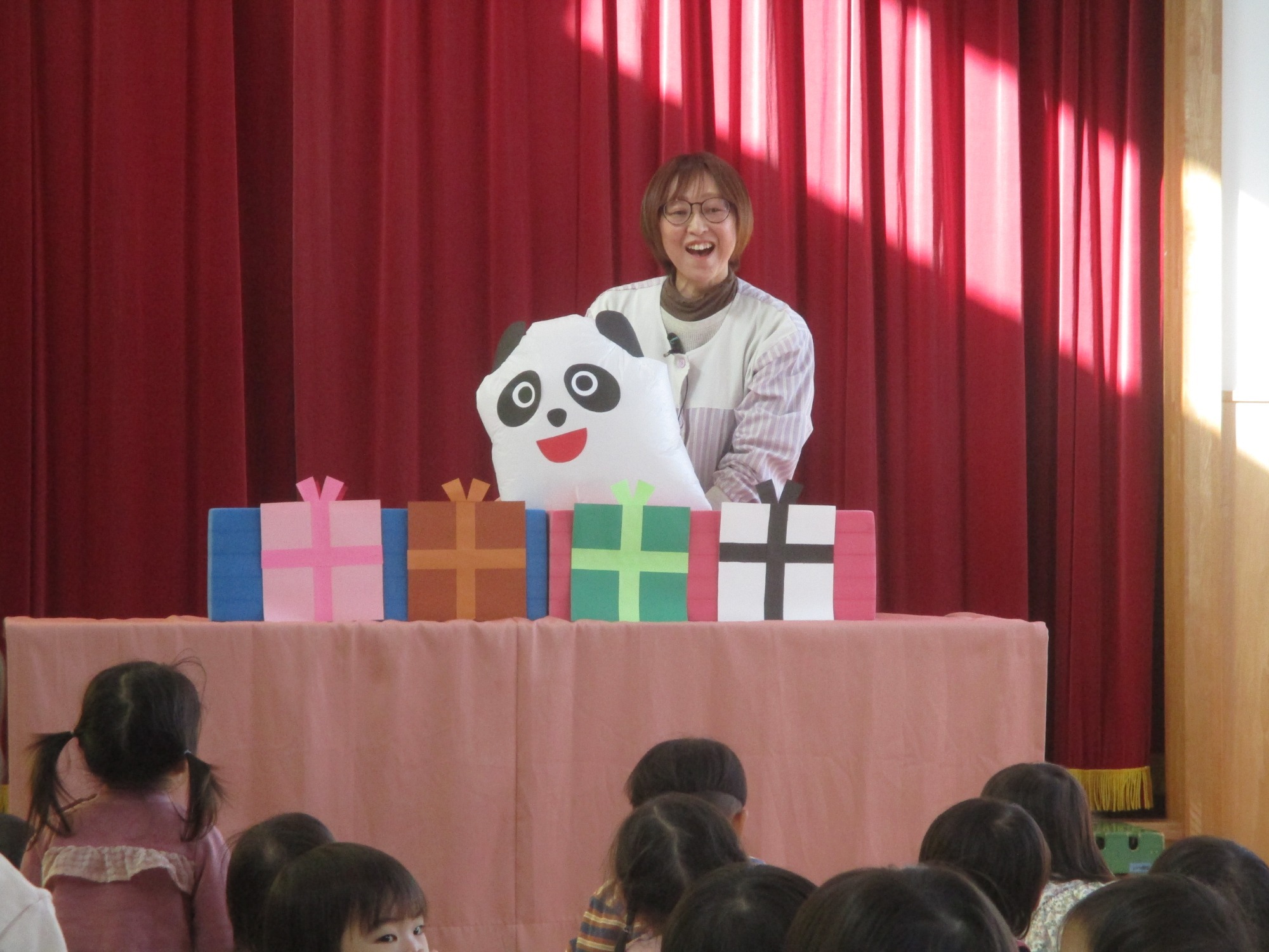 お楽しみではプレゼント箱からうさぎやパンダなど色々な動物が膨らみながら出てきて大喜び✨