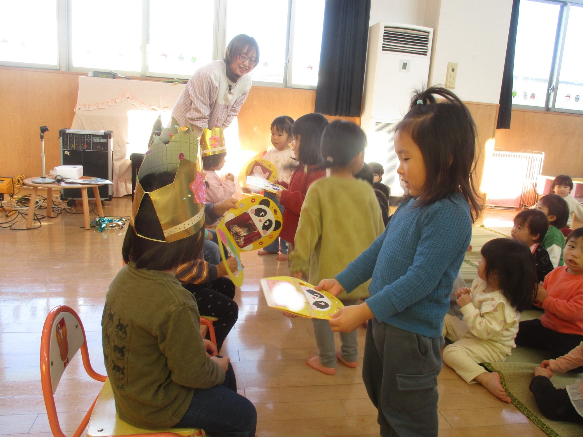 シアターの最後には、誕生児のお友だちにかんむり👑のプレゼントが‥💕😊