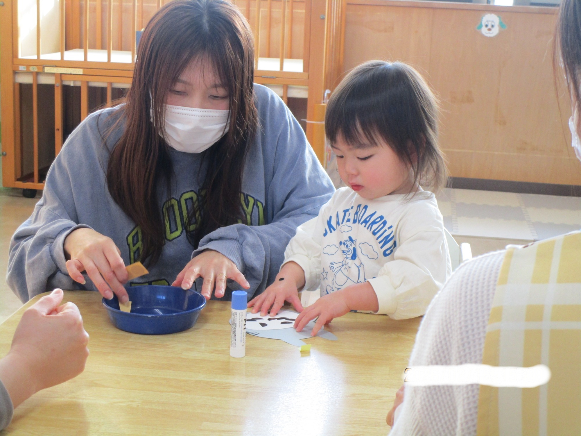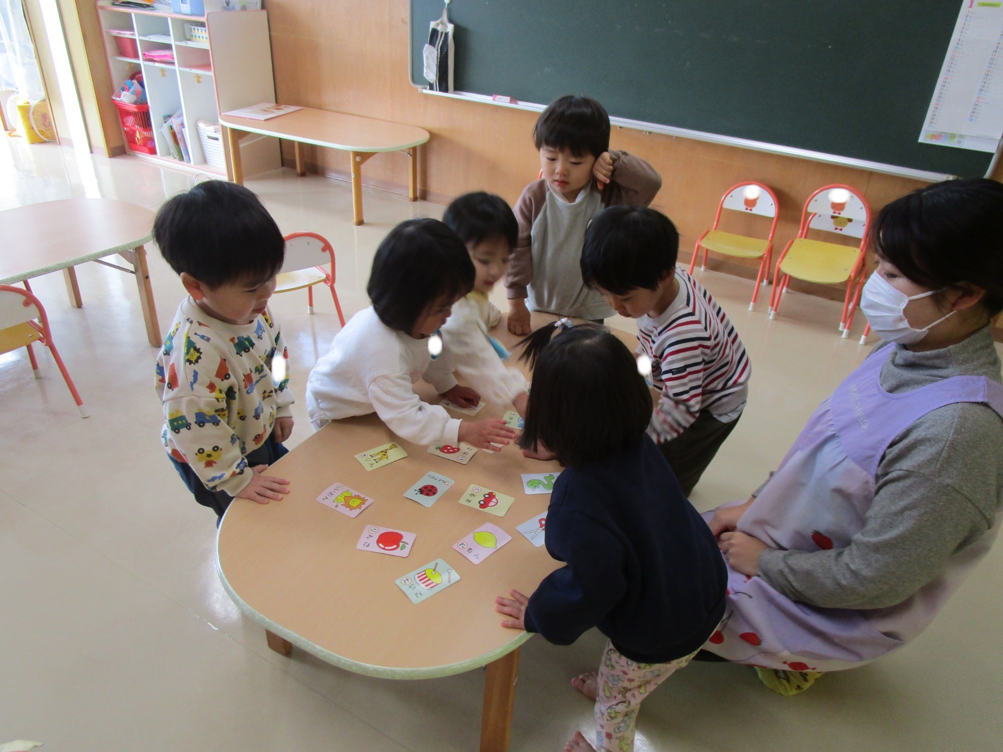 また、年長児のお友だちと2歳児のお友だちで交流する機会もあり、○✖クイズをしたり