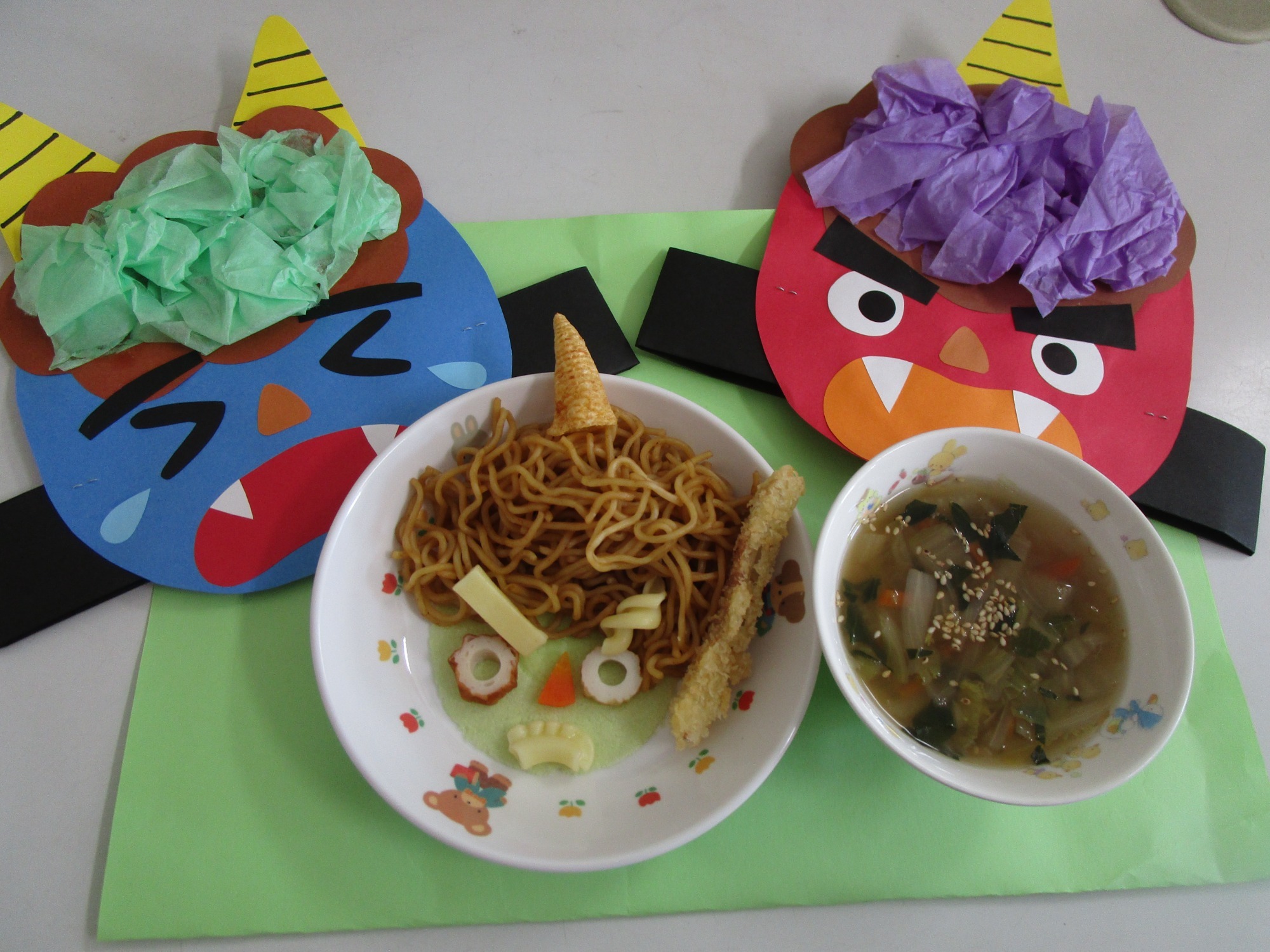 給食は鬼の顔を作った節分メニューでした👹