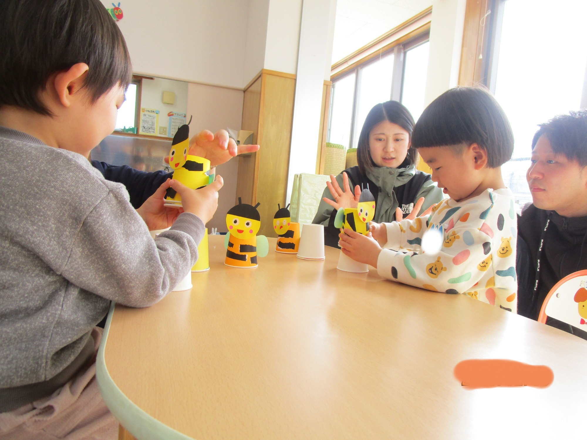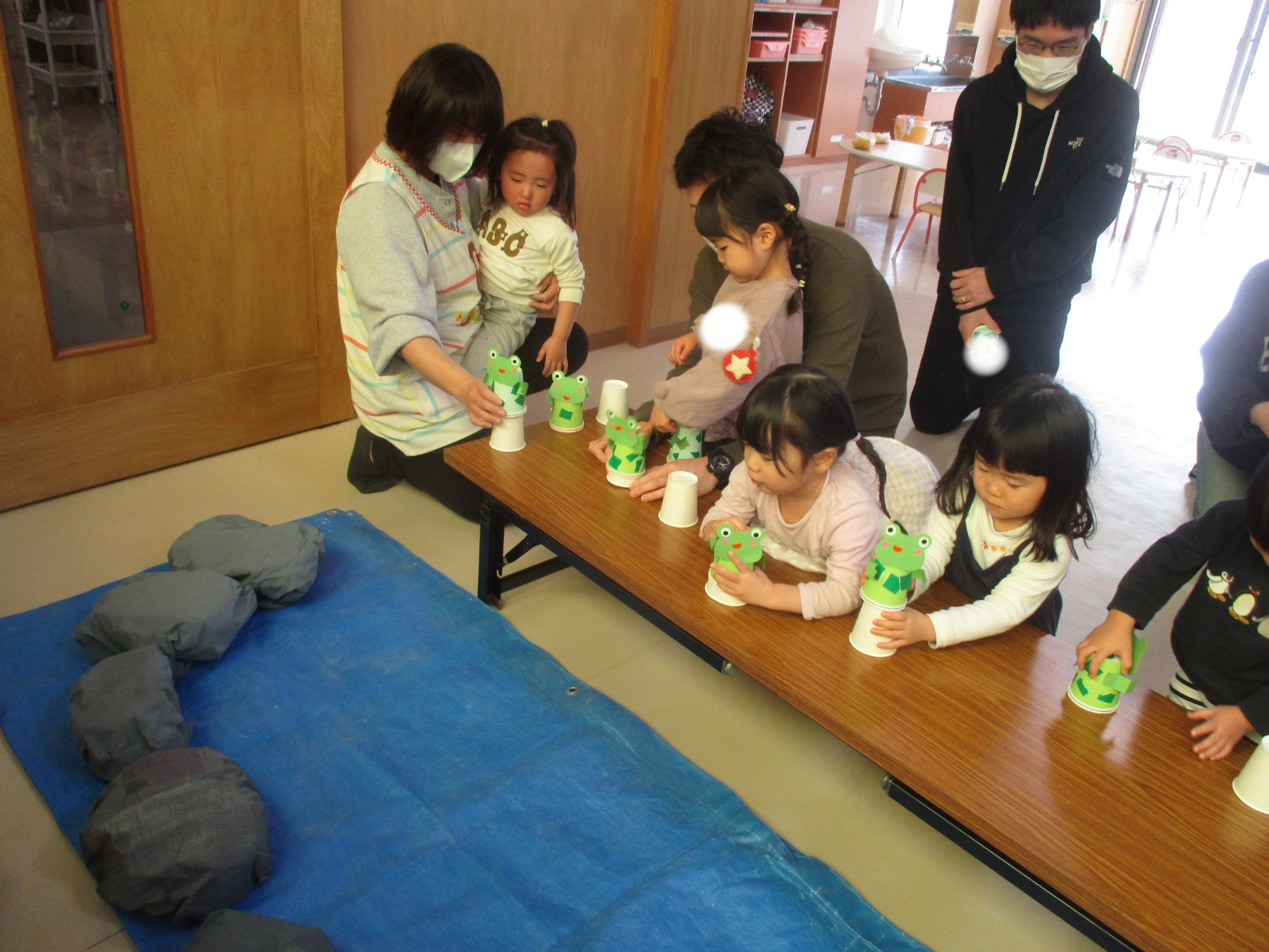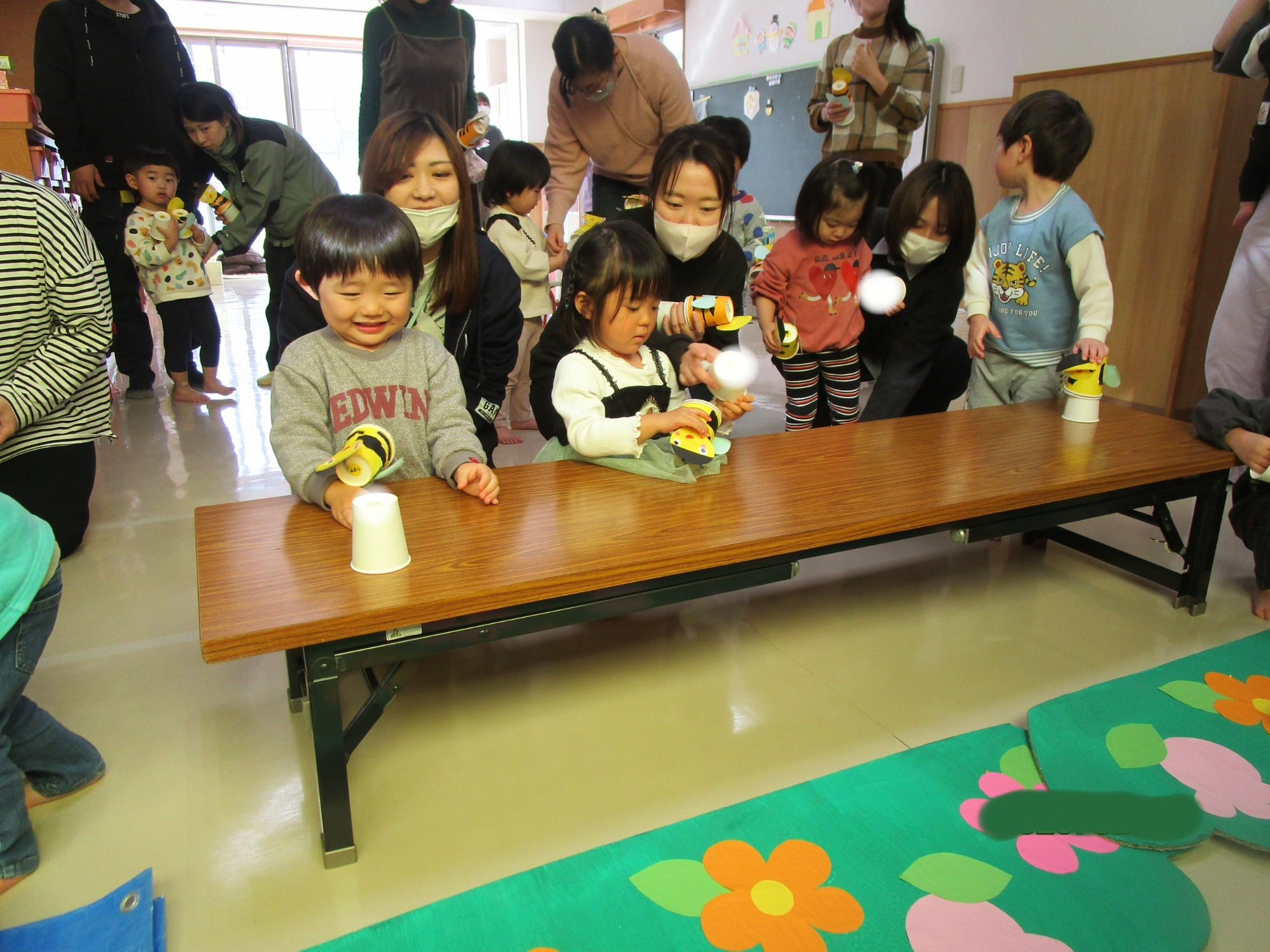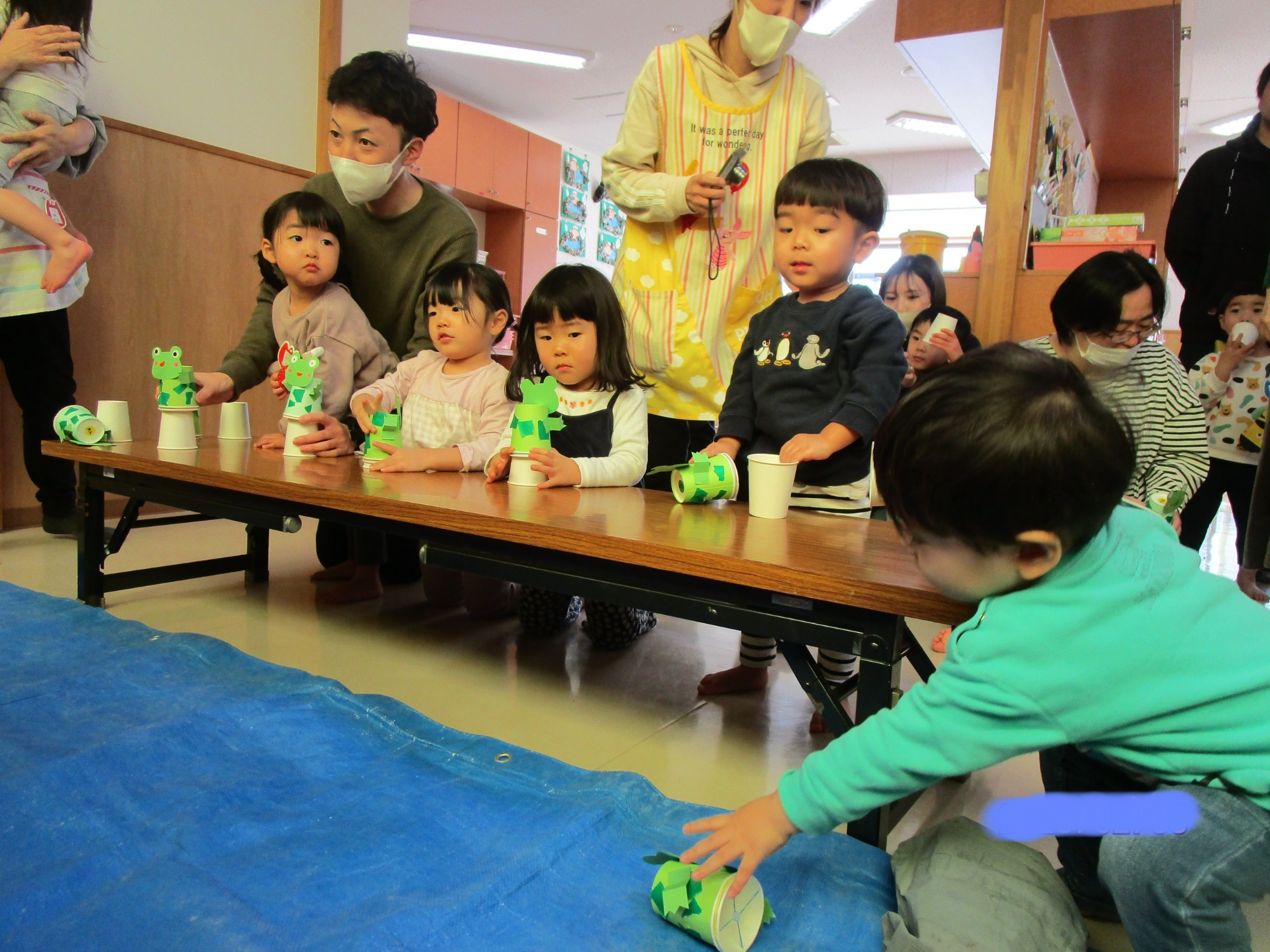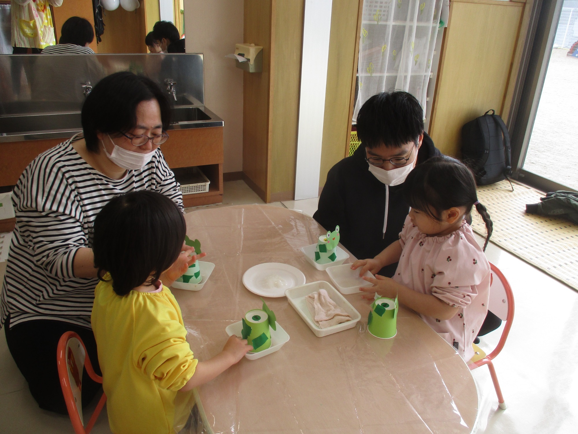 その後は親子で制作を楽しみ、紙コップで作ったカエルやハチを飛ばして遊びました🐸