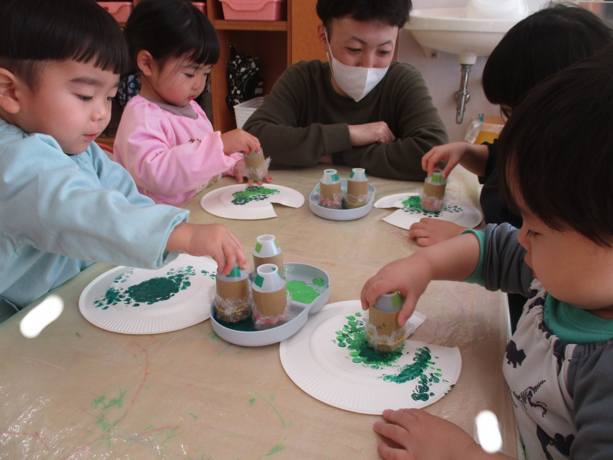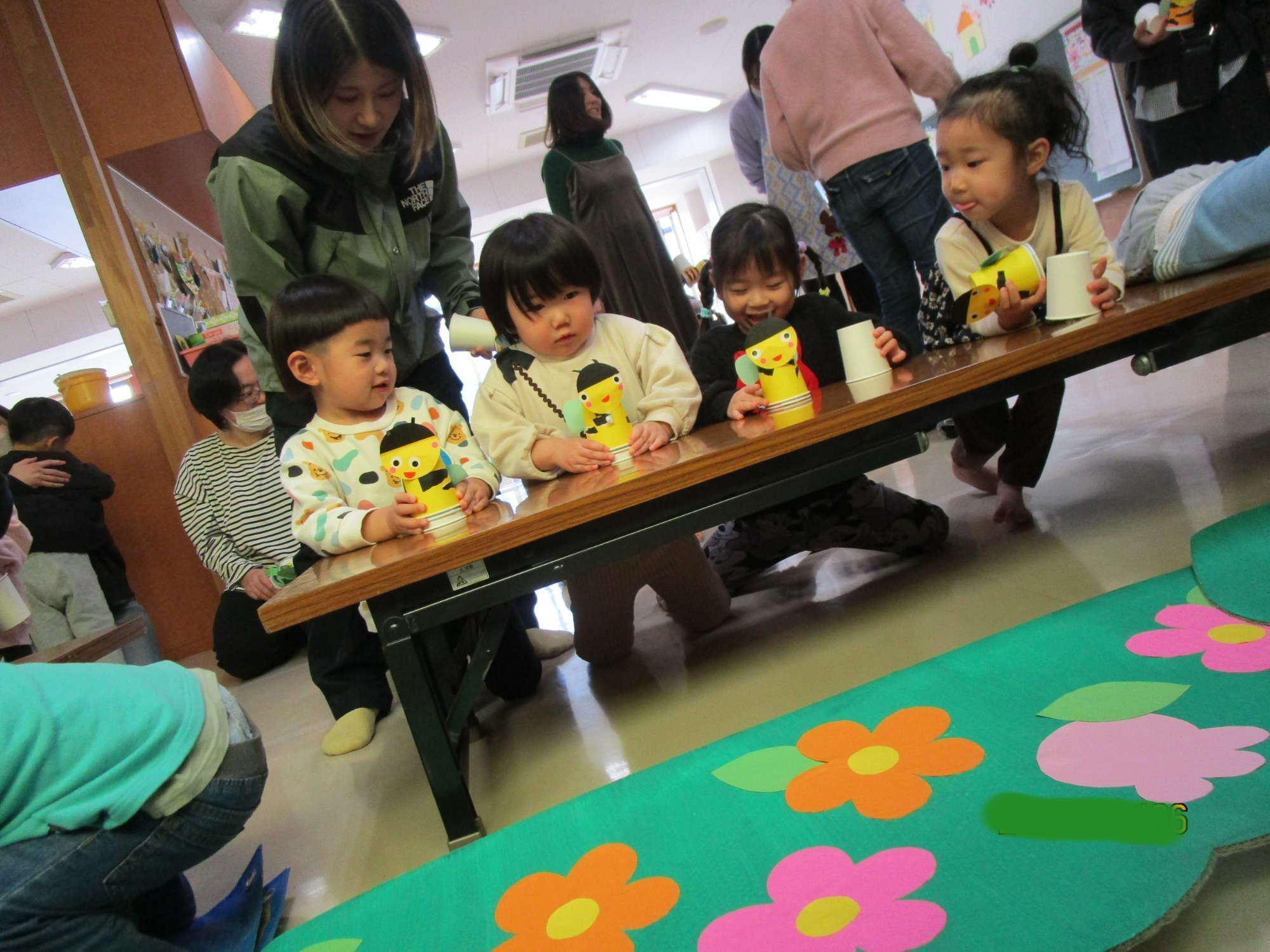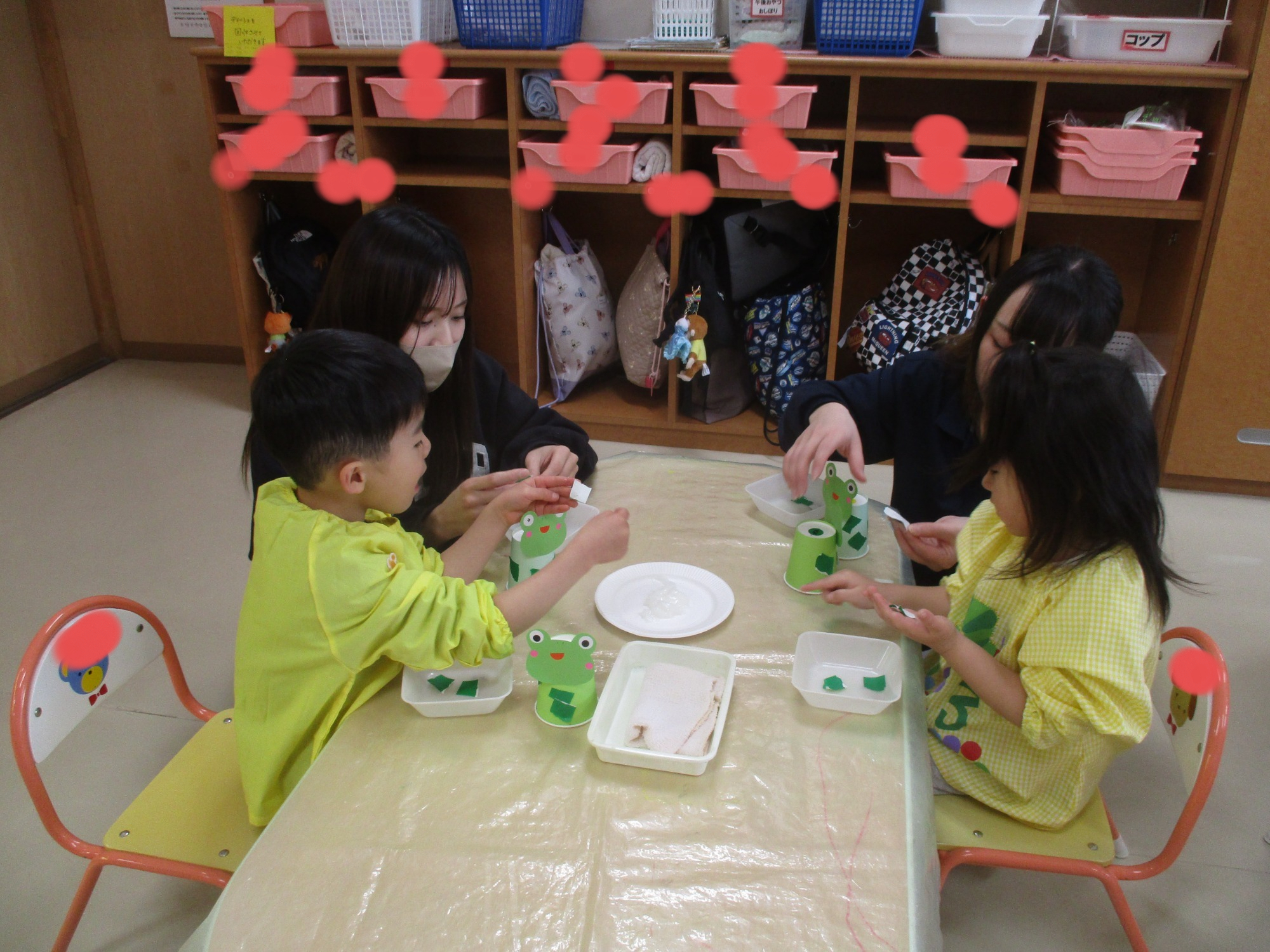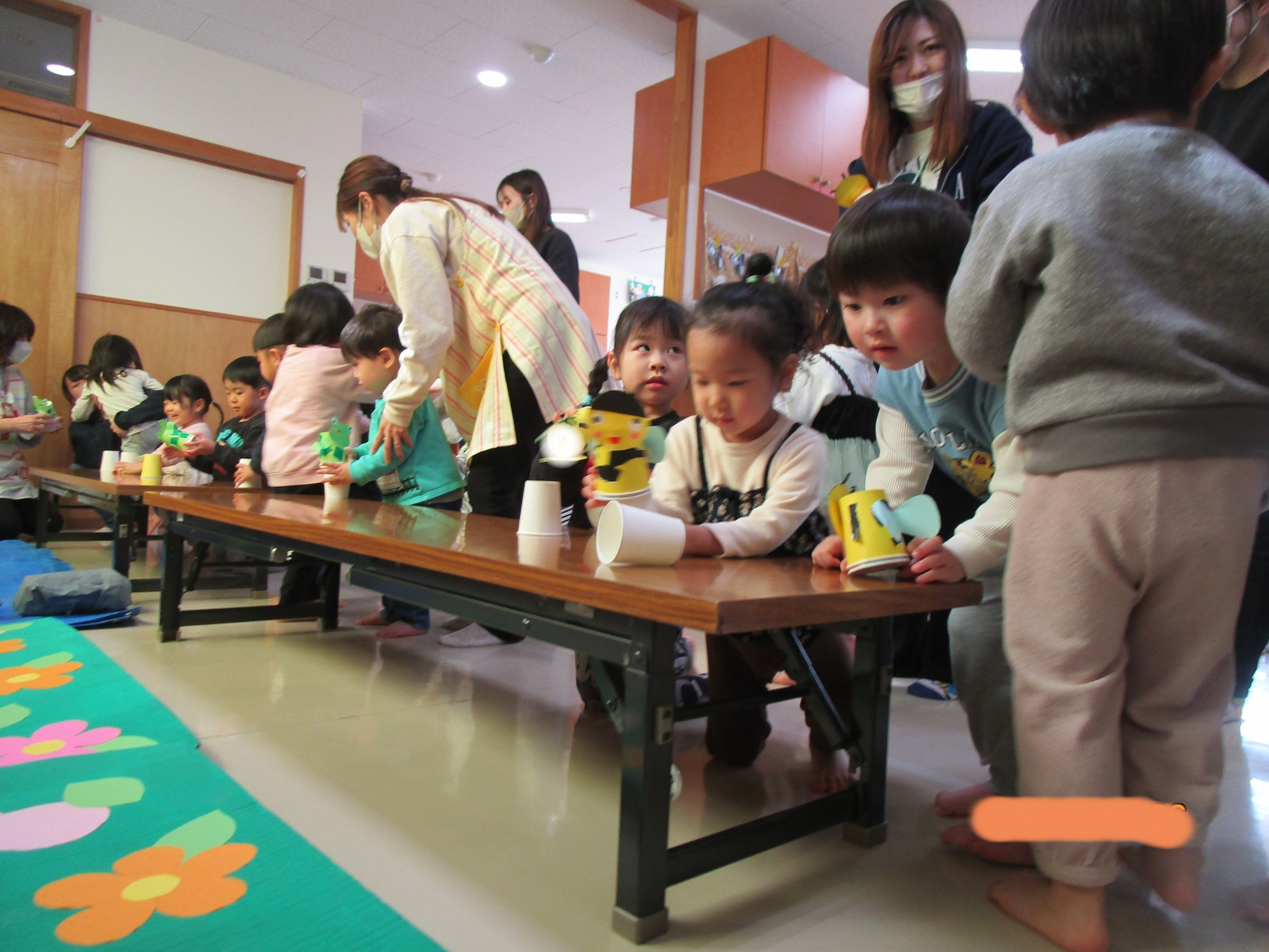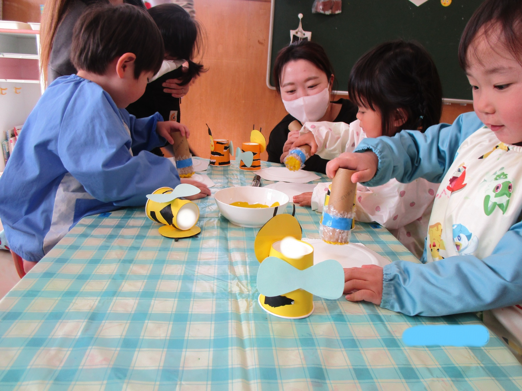 その後は親子で制作を楽しみ、紙コップで作ったカエルやハチを飛ばして遊びました🐸