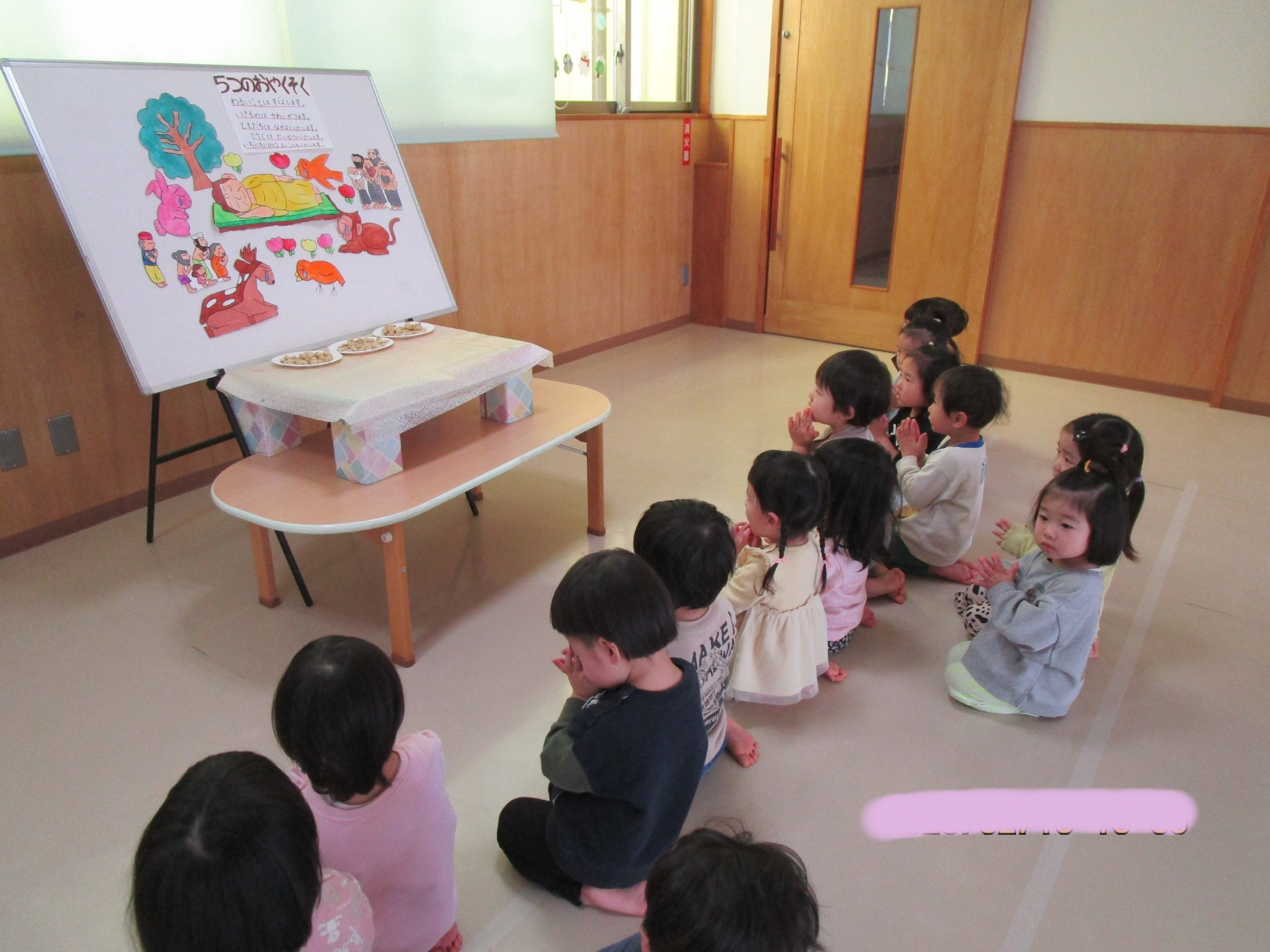その後は、ののさまがお悟りを開かれたお話を子どもたちは真剣な表情で聞いていましたよ😊