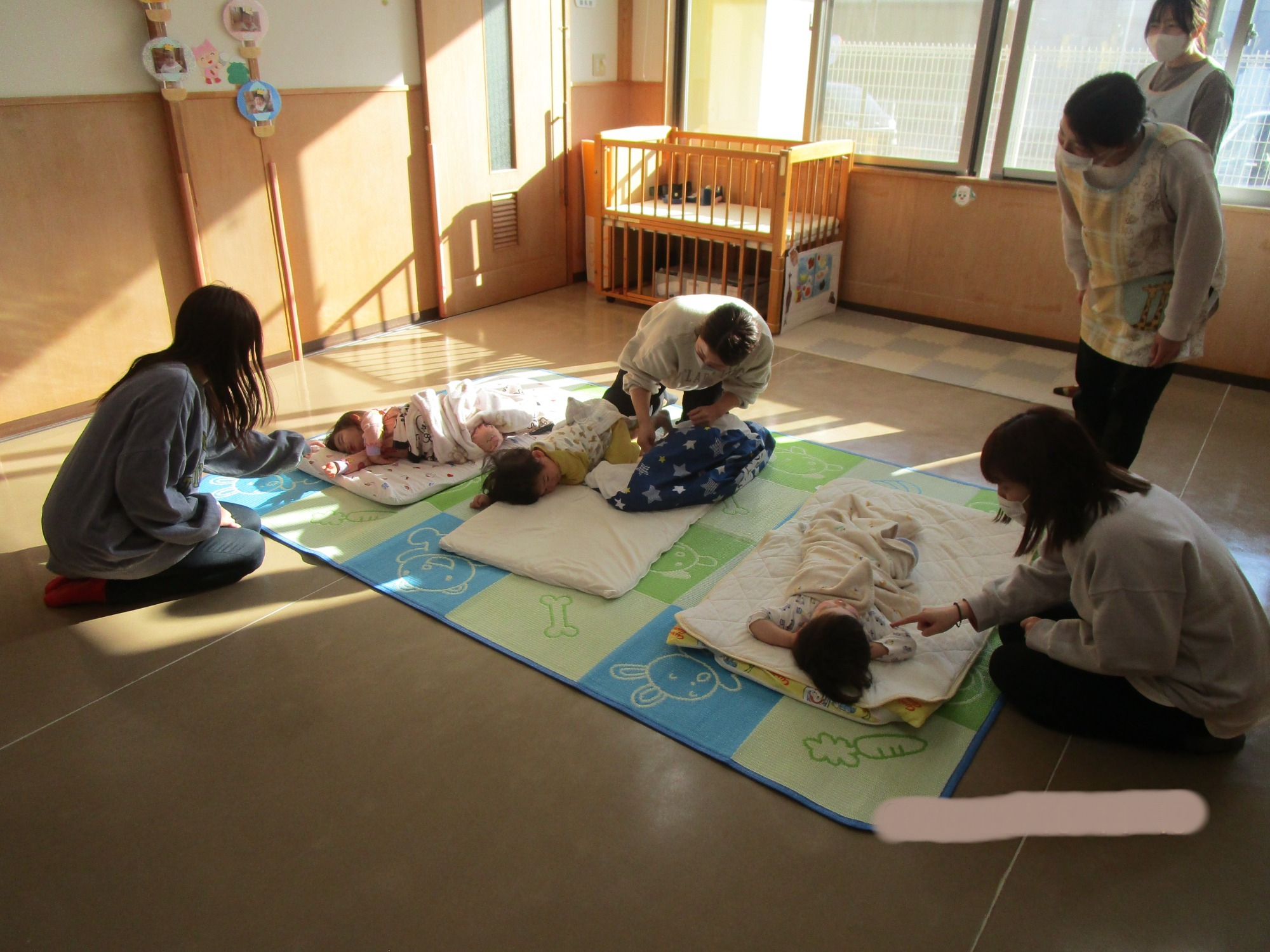 お昼寝から起きるとおうちの人の姿が見えて驚いた表情の子どもたち👀‼