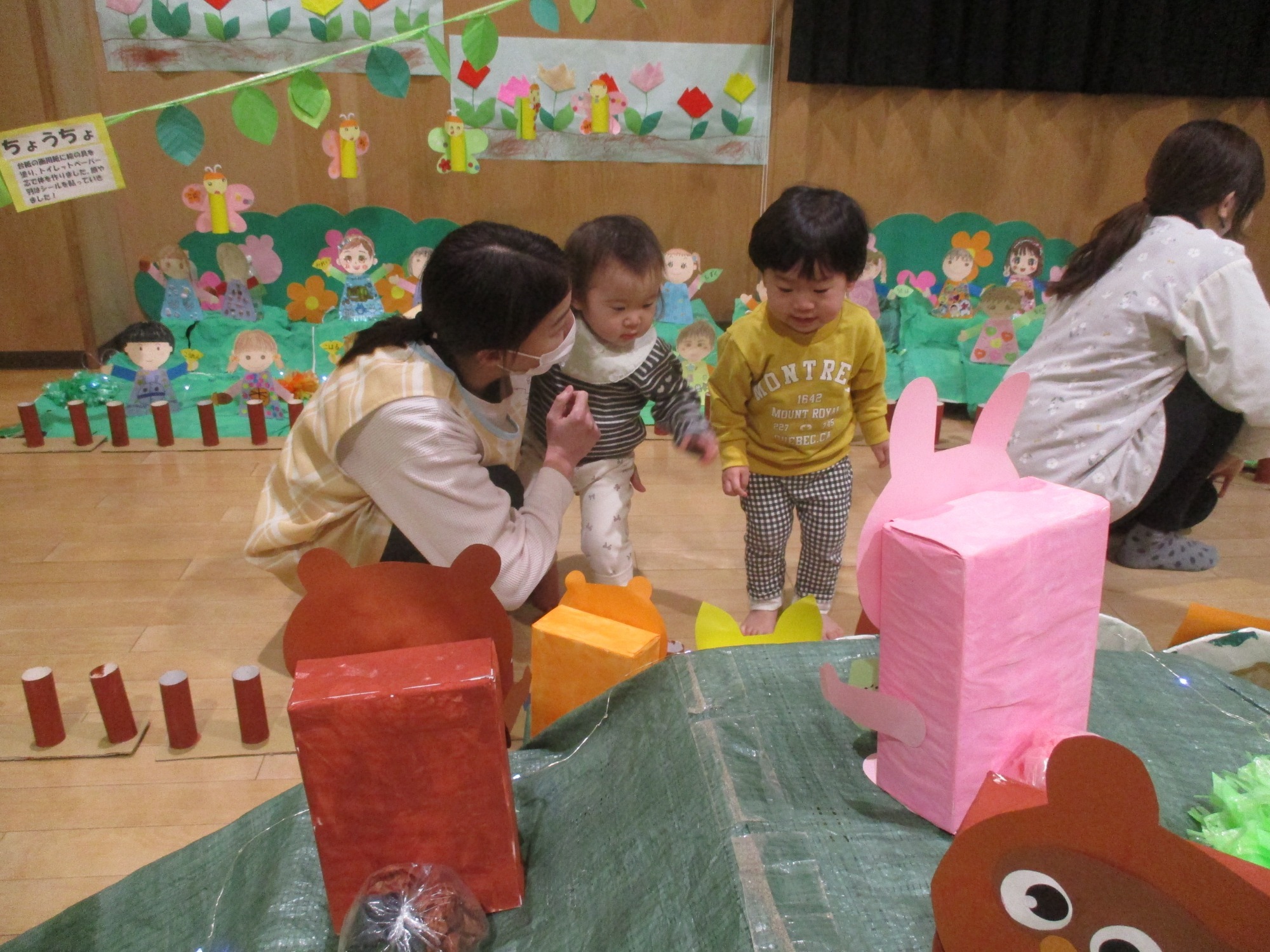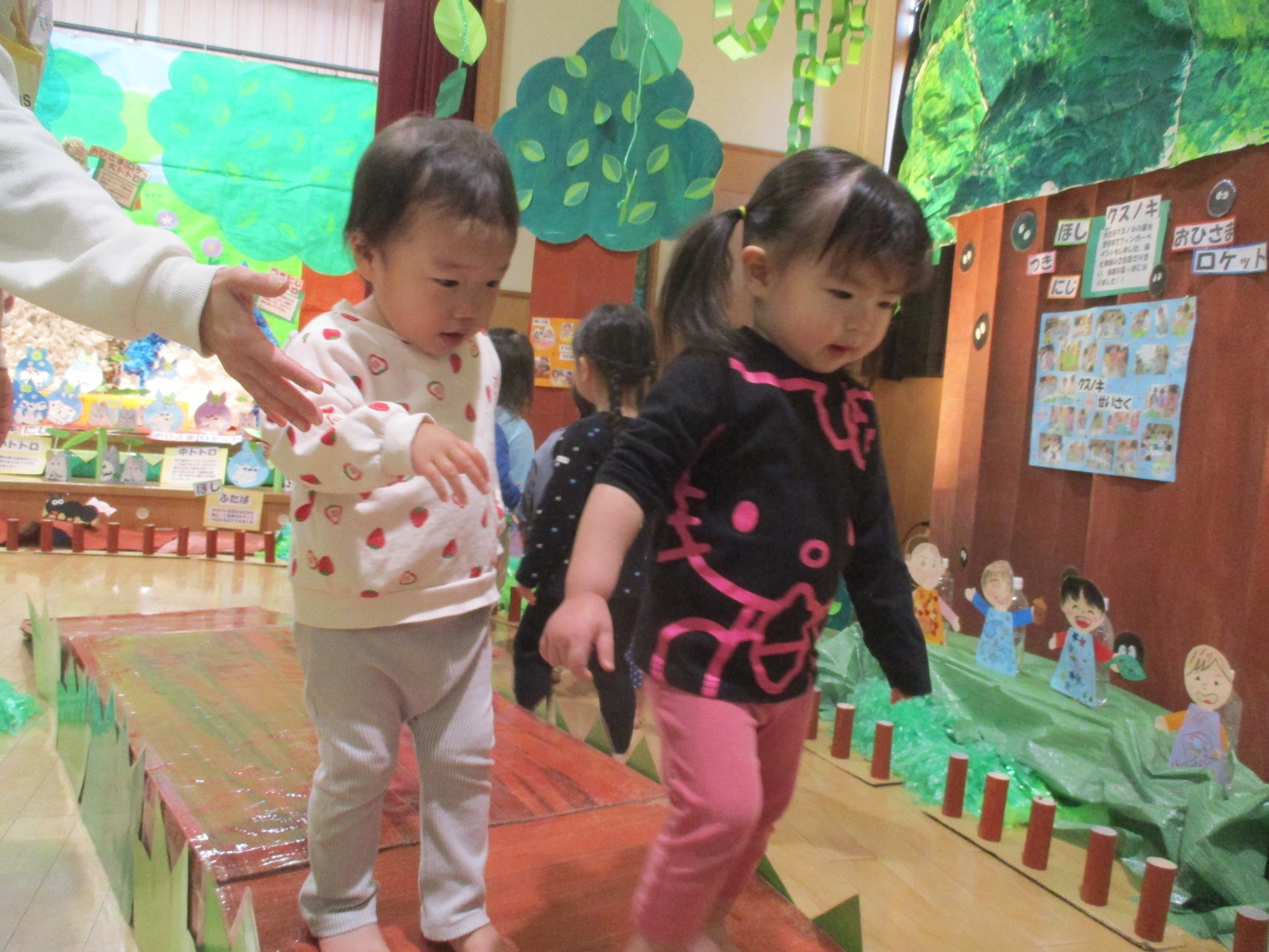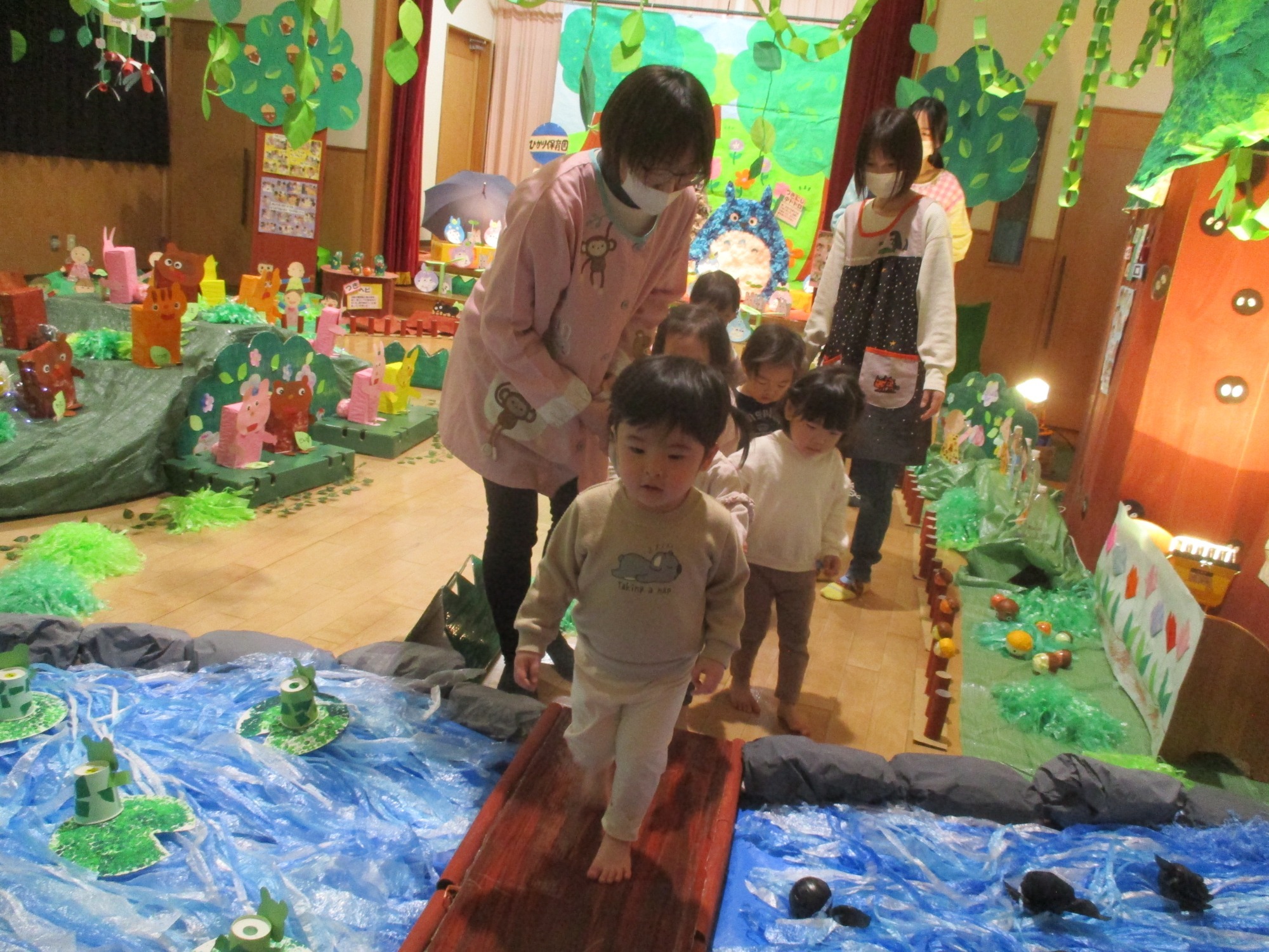子どもたちはワクワクした表情でトンネルをくぐったり、そーっと一本橋を渡ったりしながら楽しんでいました♪