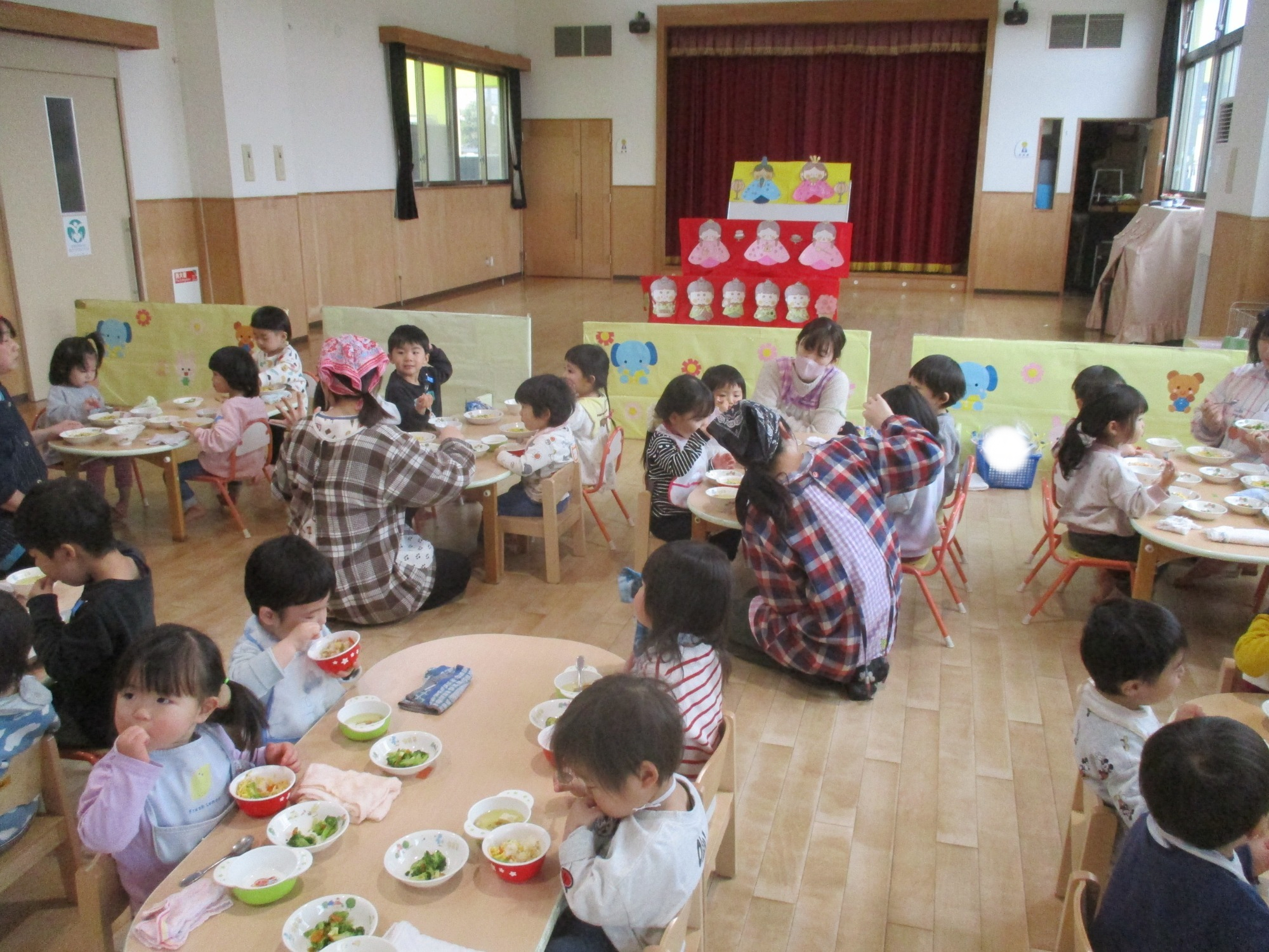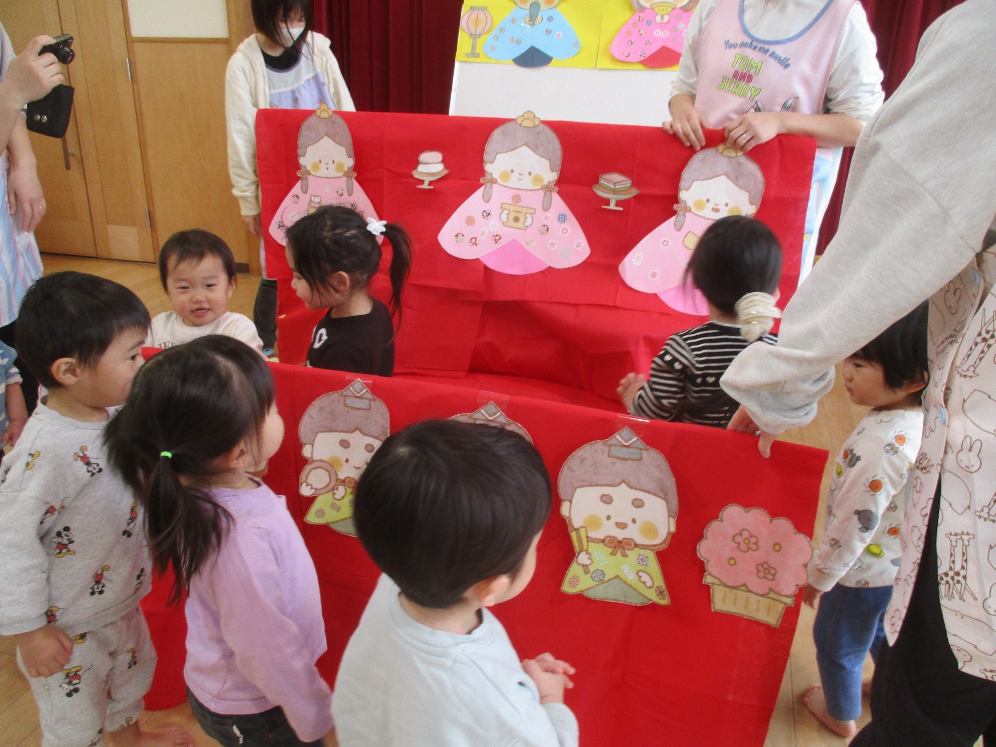 みんなでホールに集まり、ひなまつり会をしました🌸