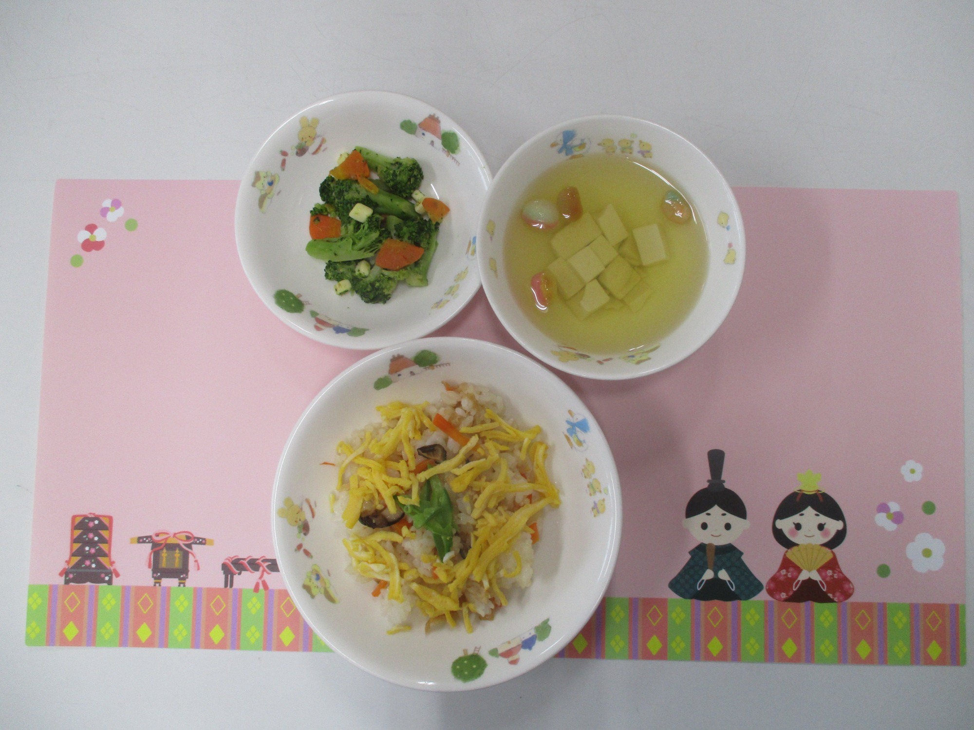 給食はちらし寿司、おやつはひなあられとカルピスのひな祭りメニューでした✨